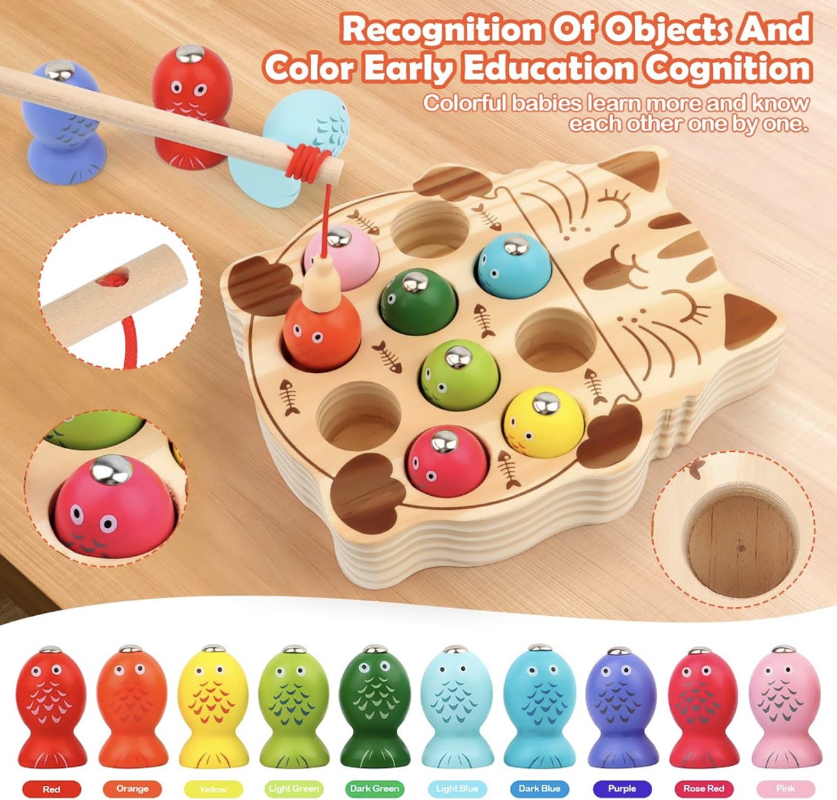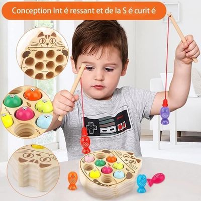Coordination œil Main Jeu De Pêche Magnétique En Bois Viga - 20 Poissons Numérotés + 4 Cannes - Pour Enfants Dès 3 Ans Jeux Bebe 2 Ans Fille Peche Magnetique Jouets De Pêche - Magnétique - Jeu De Poisson - Pour La Motricité Fine - 2 En 1 En Fishing Game Développement Pratique: Adoré des 2-6 ans, ce jeu éducatif magnétique est parfait pour les occasions familiales et festives. Il encourage le jeu manuel, stimulant ainsi l'imagination et favorisant le plaisir d'apprendre ensemble Apprentissage Interactif : Par sa manipulation pratique, ce jeu de pêche sensoriel favorise l'exploration autonome, optimisant le développement des capacités cognitives et de la concentration chez les jeunes . Jeu d'Équipe Interactif: Doté de deux cannes à pêche, ce jeu de pêche magnétique pour supporte les batailles à deux joueurs et les jeux en équipe, promouvant le... Développement des compétences : Stimule la coordination œil-main et la motricité fine des grâce à des activités de pêche magnétique captivantes, conçues pour améliorer naturellement l'adresse et la concentration durant le jeu Son design attrayant et sa facilité d'utilisation en font un choix très apprécié des pour des heures de jeu ludique.