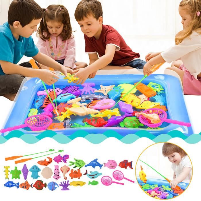 Forfait pêche : Le jeu de pêche comprend 35 poissons, 4 petits seaux, 2 grandes cannes à pêche magnétiques, 6 petites scènes et 1 tournevis. Jeu Pêche Musical Tournante APPIE Jeux De Pêche Magnétiques Pour Tout-Petits 3-5 Ans Garçons Jeu Peche A La Ligne Enfant Description du produit 【Description】 1., Les jouets de pêche magnétiques sont fabriqués en plastique non toxique de haute qualité, inodore et ne se décolore pas., 2., Ce jeu de pêche peut divertir les enfants plus longtemps car il est stimulant et la pêche donne aux enfants une sensation de fraîcheur., 3., Il est parfait pour les anniversaires, Noël ou d'autres occasions spéciales et constitue une riche source de divertissement pour les enfants de tous âges. Jouet Éveil - Non spécifié - 8 en 1 - Jouet en Bois - Xylophone - Jeu... Valeur Éducative : Ce jeu de pêche magnétique est un jeu idéal pour aider les enfants à développer la coordination œil-main. Facile à Utiliser : avec notre jeu de pêche magnétique, allumez simplement l'interrupteur et le plateau de jeu de pêche tournera lentement sur différentes musiques et certains poissons ouvriront la bouche ! Jeux De Pêche Magnétiques En Bois Pour Enfants 3D,Pour Attraper Les... Améliorez la coordination œil-main, cultivez la patience des enfants et stimulez l'intérêt pour la pêche. Tous les e-mails recevront une réponse dans les 24 heures, hors week-end et jours fériés. Contrôlez la canne à pêche pour mordre le poisson et tirez-la soigneusement pour attraper les petits poissons. VEGCOO Jouet Enfant 2 Ans, 46 Pcs Peche a La Ligne avec 2 Pôles Avertissement De Sûreté NO Plein sentiment d'accomplissement.