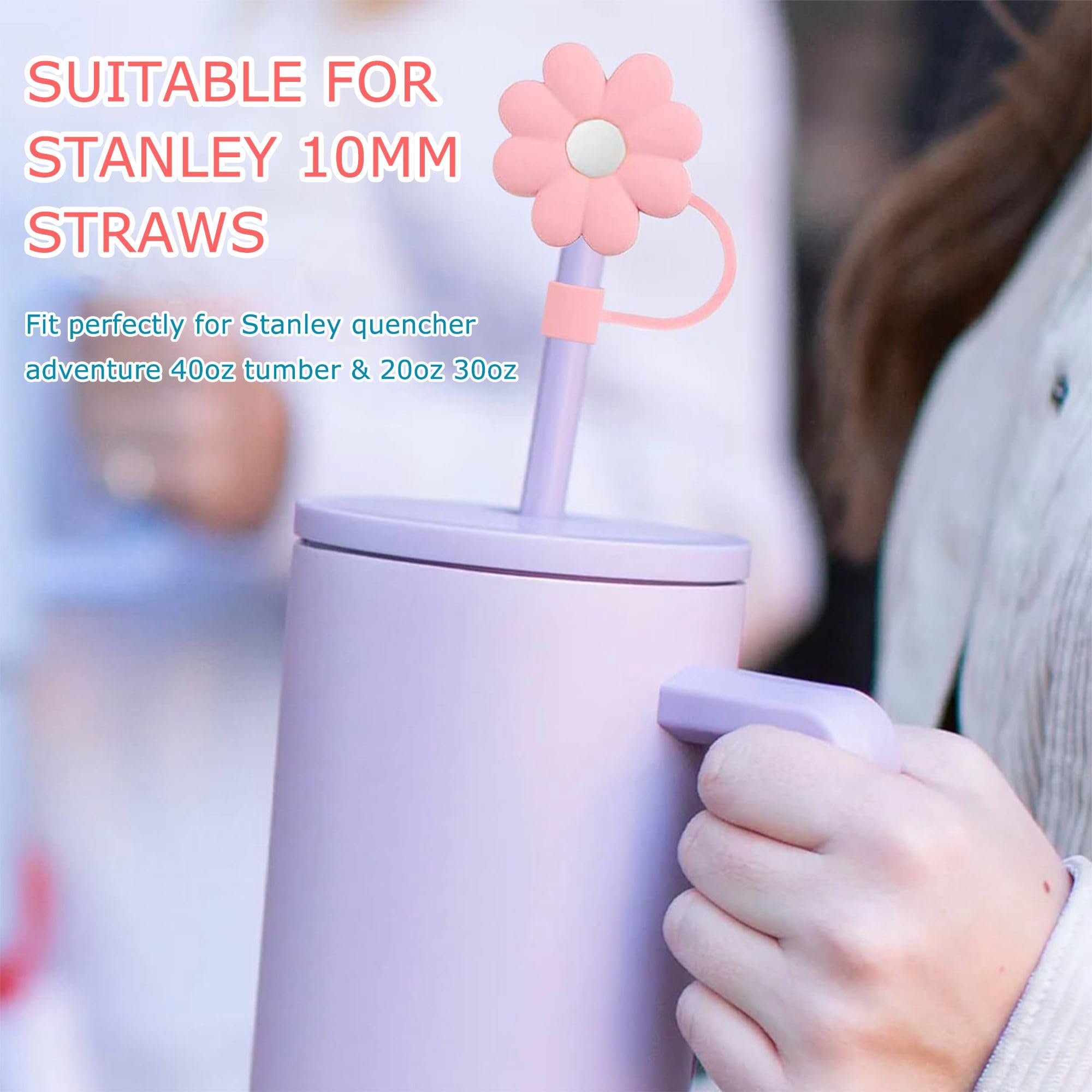 Lot de 4 bouchons de paille en silicone à motif de fleurs mignonnes - Anti- poussière - Bouchons de paille pour pailles réutilisables - Accessoires de cuisine Le bouchon de paille pour tasse Stanley peut empêcher les objets impurs de pénétrer dans la paille, propre et hygiénique, rendant la consommation plus rassurante Lot Bouchons Paille Réutilisables LOT DE 4 Bouchons De Paille En Silicone Réutilisables Avec Bouchon De Paille Silicone Emballage : sac en PVC Décoration de paille : les décorations de paille en forme de nœud ajoutent une décoration unique et élégante à votre gobelet, le rendant plus attrayant -Couleur : Couleurs assorties Belle Fleurs Rose Sakura Fleurs Cerisier Fleur Pendant Le Printemps... Facile à utiliser : le joli capuchon de paille peut être facilement attaché ou retiré. Matériau : couvercles de paille anti-poussière en silicone de qualité supérieure avec motif élégant de fleur de prunier, parfaits pour les besoins de couverture de paille de gobelet, s'adaptent à la plupart des pailles de 10 mm pour les tasses Stanley. Couvercle de paille : ce couvercle de paille réutilisable peut protéger vos pailles de la saleté, il peut être une belle décoration pour la paille. Couleur : blanc et rose Taille : les bouchons de paille pour tasse Stanley s'adaptent aux pailles d'un diamètre de 10 mm, taille de paille standard, ne tombent pas facilement. Spécification Nom du produit :Bouchons de Paille en Silicone Réutilisables, Matériau : silicone