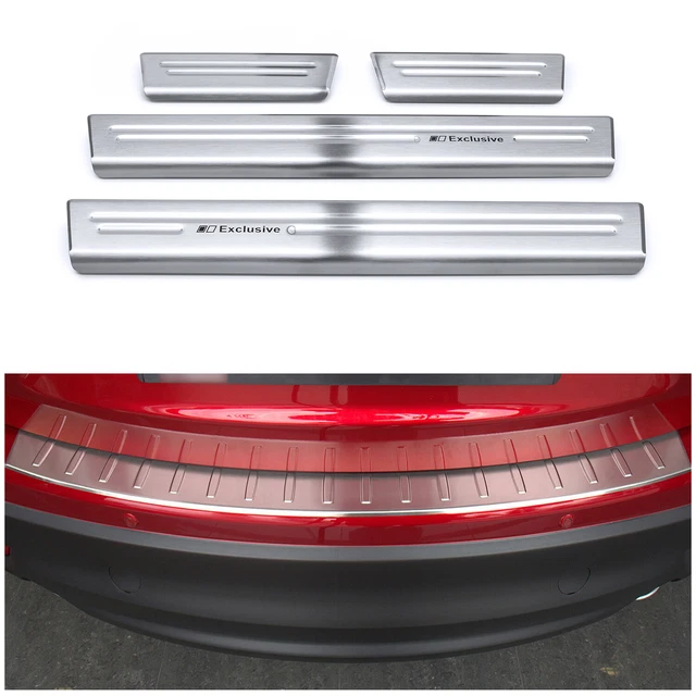 TAWD Protection de seuil de portière de voiture en acier inoxydable... [Effet de réflexion spéciale] : la protection de seuil de porte a différents effets dans différents environnements d'éclairage [Installation facile] : nettoyez la surface de la cible, retirez le film protecteur de la bande forte et collez-la à la position correcte, appuyez fermement sur la surface ou utilisez des objets lourds 2022-2025 Protection Seuil De Pare-chocs Arriére Pour Mazda CX-5 2017-2025 Acier Accessoire Voiture Mazda [Le paquet contient] : comprend 4 pièces/lot, 2 pièces avant et 2 pièces arrière Protection complète]Ils protègent efficacement les seuils de portière, préviennent les rayures et l'usure, offrent une protection optimale lors de la montée et de la descente, et préservent l'état de la peinture du véhicule Pour Mazda CX-60 2022 2023 Lot de 202 plaques de protection de seuil Tuning-art XF506-1 Juego De Protectores De Umbral Para Mazda CX-5
