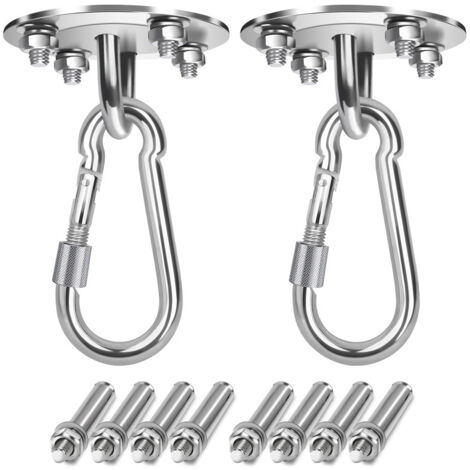 2 Pcs Lourds Crochet De Plafond, 450KG Capacité Acier 【Conception de rotation à 360 °】: La conception innovante rend nos crochet hamac suspendu de balançoire plus flexibles et peuvent être utilisés plus largement, tels que les terrains de jeux, les balançoires, les balançoires de porche ou les balançoires de hamac. Crochet Balancoire Exterieur Crochet De Plafond, 450KG Capacité Crochet De Fixation Murale De Plafond Robuste 304 Acier Inoxydable Kit De Suspension Pour Hamac Chaise Accrochante Sac De Boxe Yoga 88931156 Kit Fixation Béton Bois 【Service】Si vous avez des questions sur le Crochet de Plafond produit, n'hésitez pas à nous contacter. À propos de cet article[Matériaux de qualité]Anneaux d'acier inoxydable 304 faits de matières premières de haute qualité. Pas de rouille, résistance à la corrosion, dureté élevée, environnement non-toxique et non pollué. Convient à n'importe quelle scène.[Facile à Installer]Ce produit a 4 trous sur la surface de montage avec boulons pour assurer la robustesse et la... 2 Pcs Crochet De Plafond Fauteuil Suspendue Lourds Crochet Plafond Capacité De 450Kg 360... 【Largement application】 Pour une utilisation intérieure et extérieure, applicable pour les plafonds en béton et les poutres en bois, la meilleure solution d'ancrage pour toutes les sangles de suspension et les entraîneurs de résistance, le kit de balançoire pour hamac, les anneaux olympiques, les cordes de combat, les balançoires de yoga et l'équipement de boxe. 【Facile à installer】: Nous avons pré-percé deux trous pour le boulonnage à des poutres en bois ou en béton. Nous nous engageons à vous répondre dans les 24 heures et faisons de notre mieux pour répondre à vos besoins! Matériau: acier inoxydable 304., Capacité de poids: 450KG Package: 1 x cintre pivotant, 1 mousqueton M8, 2 x boulons, 2 x vis Comprend 2 ancrages pour béton et 2 tire-fonds hexagonaux, et une conception unique en une seule pièce et peut être installé en quelques minutes. Crochet hamac caractéristiques du produit Poids: 474g Dimensions de l'emballage: 13x10x3,5 cm.
