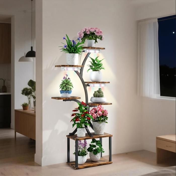Tribesigns Support pour plantes d'intérieur à 7 niveaux, étagère pour... Elles allient fonctionnalité et aspect pour plus de sécurité. Polyvalent : ce support pour plantes de 180 cm de haut est idéal pour les intérieurs, les balcons et les jardins. Meuble Déco Plantes Rustique Tribesigns Support De Plantes En Bois - 6 Niveaux - 180 Cm De Etagere Exposition Plantes Robuste Présentation ordonnée : avec un espace de rangement généreux et un espace pour diverses plantes et articles de décoration, ce support de plantes aide à garder votre collection organisée et à améliorer l'esthétique de votre environnement. Avec 7 étagères spacieuses, il peut accueillir plus de 10 pots de fleurs – et en plus, y'a 5 crochets en S pour suspendre des plantes grimpantes ou décoratives Design industriel : le support de plantes d'intérieur à 6 niveaux se distingue par son design distinctif qui ajoute du charme industriel et du confort vintage à votre intérieur, ce qui en fait un accroche-regard dans n'importe quelle pièce. Tribesigns Support pour plantes de 180 cm, étagère à plantes à 5 niveaux en bois en métal avec 10 crochets en S, présentoir Multifonction pour balcon intérieur, salon, jardin, bureau (marron