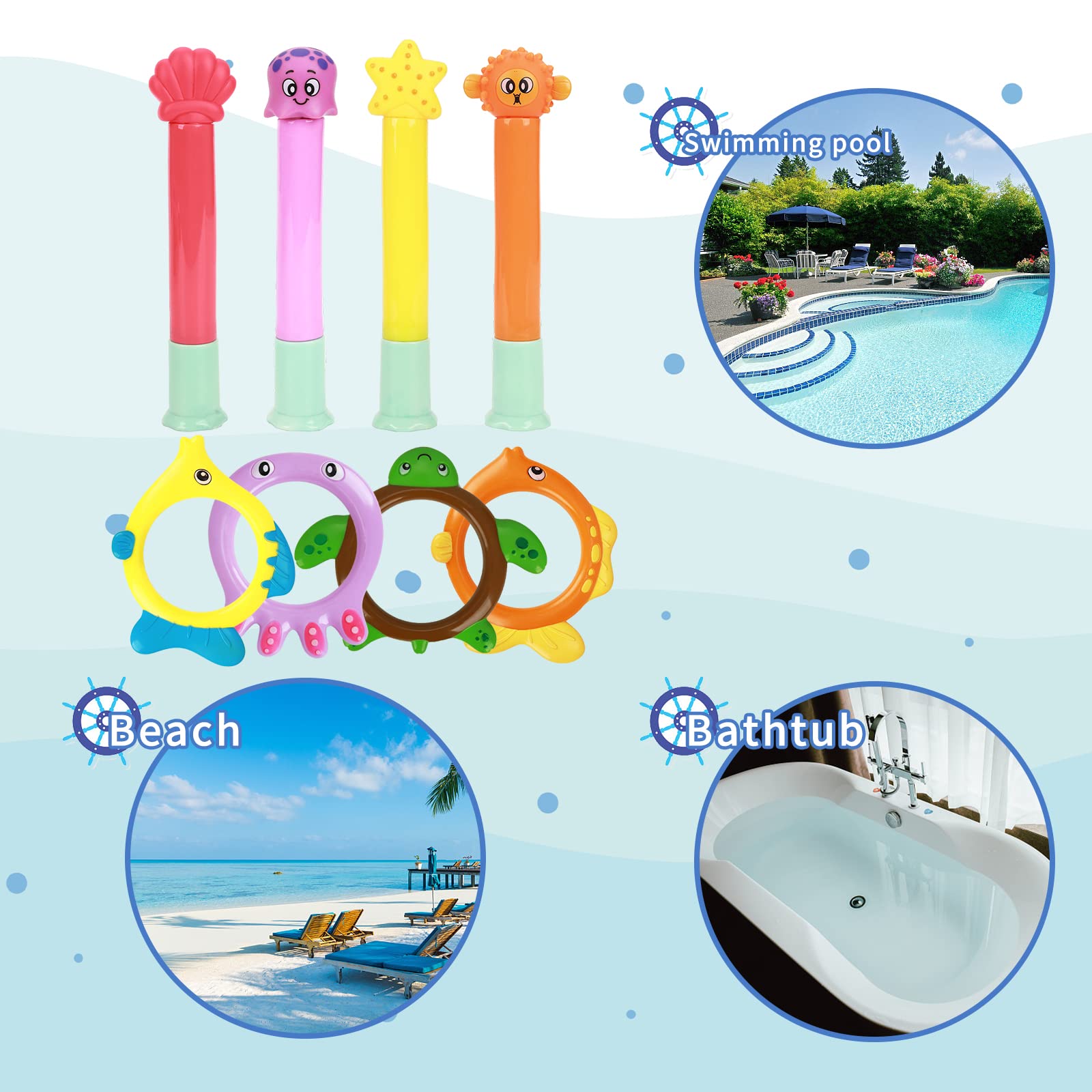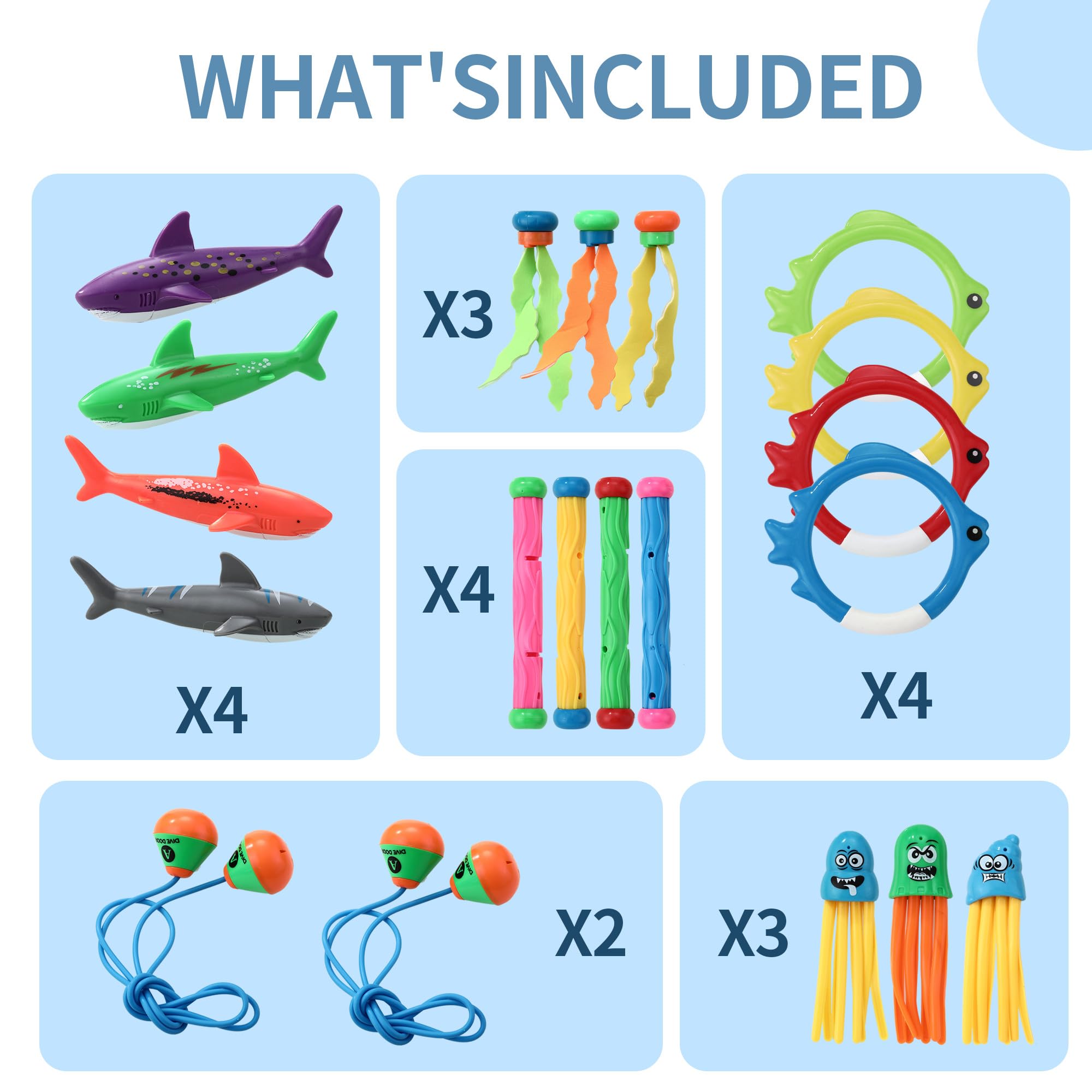 Idéal pour les jeux de piscine et l’entraînement des enfants. Ils restent droits une fois jetés dans l’eau, permettant aux enfants d’apprendre à plonger en les cherchant. C’est aussi un plaisir de jouer avec ces jouets dans la piscine avec leurs amis et leur famille. Contenu du coffret : 3 couleurs différentes de jouets de plongée amusants en forme de clown souriant : marron, bleu et vert. JOYIN Bâtons de plongée, jouets de piscine, 8 pièces, bâton de plongée sous-marin pour enfants, jouet de natation coloré pour enfants Matériau sûr : Fabriqués en plastique 100 % non toxique et de haute qualité, ces jouets de piscine pour enfants offrent une structure souple et une surface lisse, évitant ainsi les rayures et offrant un plaisir infini. Spécifications du produit: Taille :12., 8cm*5cm*5cm Quantité : 3 pièce Couleur : Comme indiqué Matériau : Plastique L'ensemble comprend: 3PCS Jouets de Plongée Avertissement De Sûreté Tenir à l'écart des flammes nues Lot de 3]Cet ensemble de jouets de piscine comprend 3 poissons plongeurs de 3 couleurs différentes : bleu, orange et vert, avec des couleurs vives et de beaux motifs, appréciés des enfants.[Matériau sûr]Les jouets de piscine pour enfants sont fabriqués en plastique durable et non toxique. Le matériau est non toxique et inodore, ce qui le rend sans danger pour les enfants... C'est un excellent jouet pour les garçons et les filles qui aiment nager et plonger. Description du produit Ces plombs de piscine pour enfants fonctionnent grâce au principe de gravité : il suffit de les jeter dans la piscine, de les regarder couler sous l'eau et de commencer la chasse au trésor ! Ils conviennent aux nageurs de tous âges. Jouets Sous-marins Colorés CHUNLINLAODA 3PCS Jouets De Plongée Bâtons De Plongée Jouets De Plongé Jouets Apprentissage Natation Maquette D'armoire De Rangement Pour Jouets Pour Enfants Vue En Contre... Coffret cadeau idéal pour les enfants : Nos jouets de piscine permettent de plonger à la recherche de trésors ou de s'entraîner à la natation sous-marine.