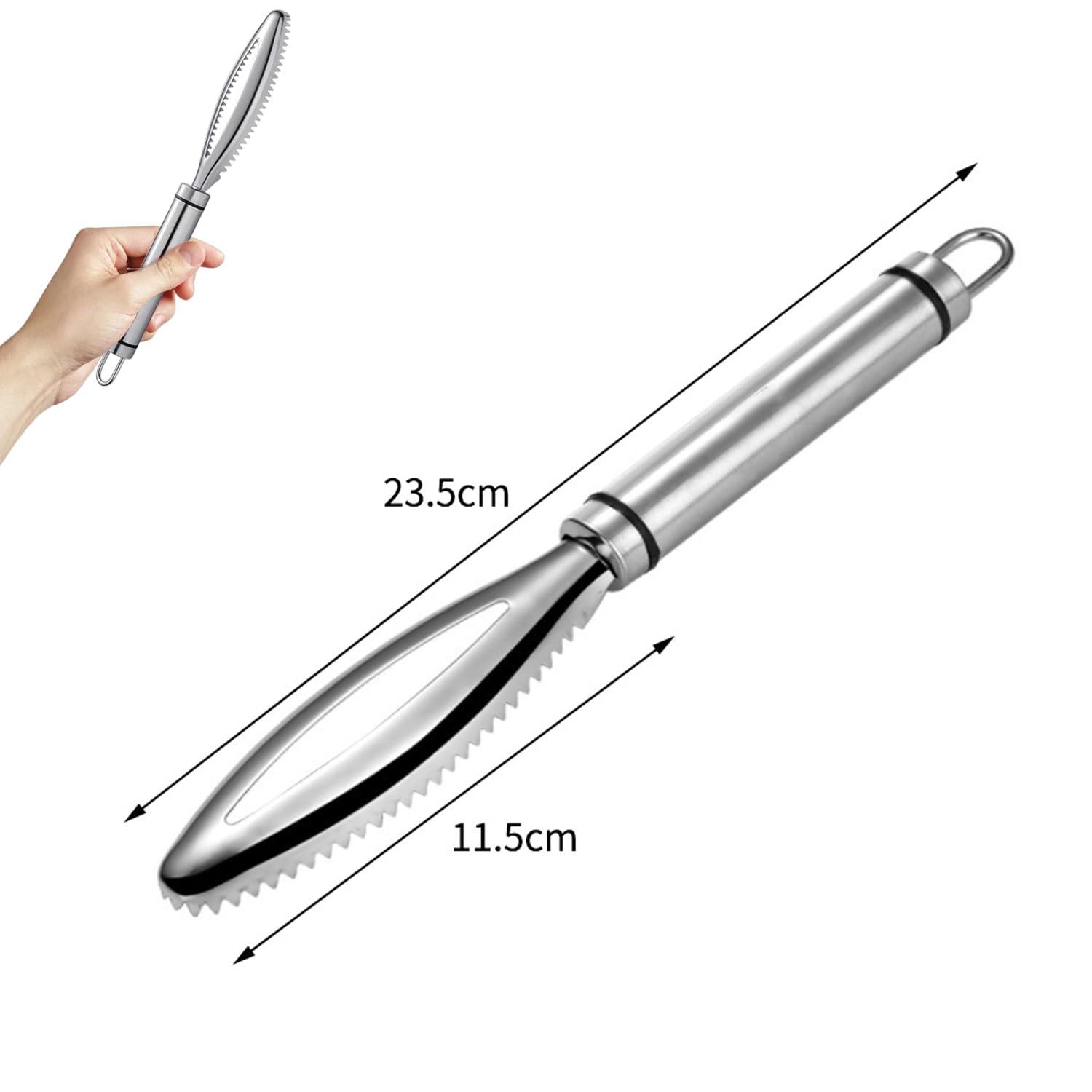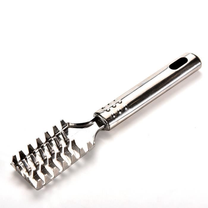 Spécification : Matériau : acier inoxydable 304 Dimensions du produit : 23,5 x 3,2 x 1,5 cm Couleur : argenté. Outil Cuisine Acier Inoxydable Écailleur à Poisson Convient à la plupart des poissons : saumon, perche, sardines, truite, etc. écailleur Poisson AIBAOBAO Écailleur De Poisson En Acier Inoxydable, Ecailleur Poisson Grattoir à écailles Avec Dents De Scie - L'extracteur d'écailles de poisson en dents de scie rend les écailles très rapides, retire les écailles plus facilement et plus rapidement. Contenu de l'emballage : 1 extracteur d'écailles de poisson., Remarques : 1., Les mesures étant prises à la main, les tailles indiquées peuvent varier de 1 à 3 mm. Détartreur à poisson SHARKDOOK, dissolvant de détartreur à poisson en acier inoxydable 304... Plus sûr à utiliser et mieux pour enlever les écailles de poisson, même dans les endroits difficiles d'accès près des nageoires et de l'abdomen À l'extrémité de la brosse à écailles de poisson se trouve un trou de suspension, de sorte que vous pouvez accrocher la brosse au mur lorsque vous n'en avez pas besoin, elle ne prend pas beaucoup de place et est facile à ranger Mesurant 23.5x3.2x1.5cm, il est compact et se range facilement - avec son œillet pour l'accrocher. Nettoyage ultra simple : à la main ou au lave... Dimensions : le décapant en acier inoxydable pour écailles de poisson a une taille de 23,5 x 3,2 x 1,5 cm. Matériau de haute qualité : la brosse écailleuse de poisson est fabriquée en acier inoxydable 304 de qualité alimentaire de haute qualité, elle est robuste, légère, antirouille, longue durée de vie, ne se casse pas ou ne se plie pas, résistante à la corrosion, inoxydable et facile à nettoyer Le design en forme de feuille dentelée en acier inoxydable peut éliminer très rapidement les écailles de poisson. - Les outils sont dotés de lames en acier dur qui peuvent bien gérer les écailles de poisson les plus dures. Un outil indispensable et pratique pour les femmes au foyer, les cuisiniers professionnels et les propriétaires de restaurants.