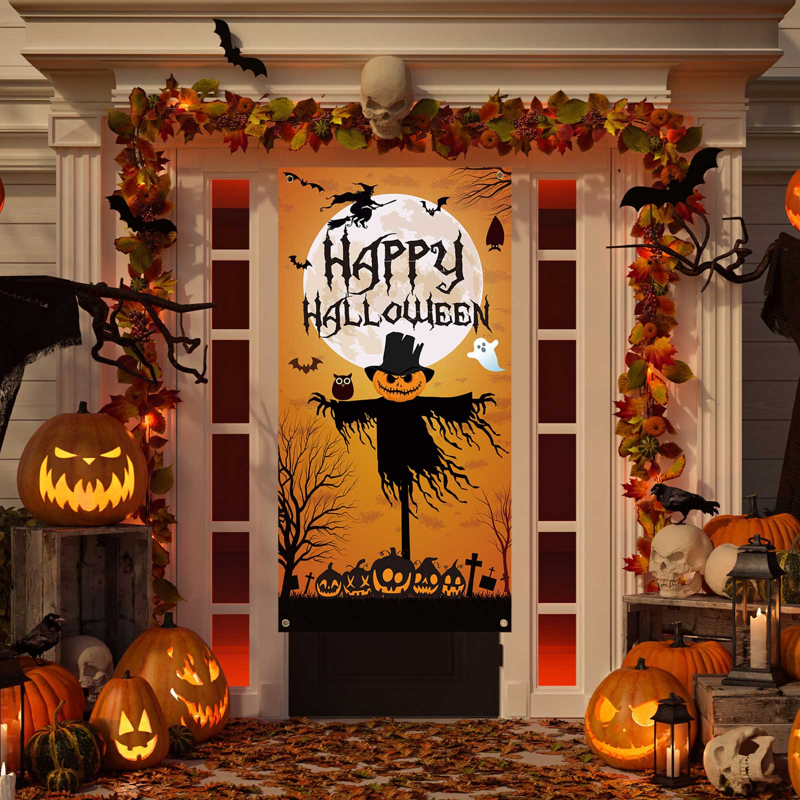 Décoration Porte Halloween VNNR Décorations De Porte D'Halloween En Tissu Pour Porte D'entrée, Porche, Sorcière, Halloween, Intérieur Et Extérieur Bannière 180cm Chat Araignée Joyeux Halloween Lettrage Ensemble D'affiche Bannière Flyer Toile D Noir 74783705 banner de porte 2d, 1 pièce - décoration halloween avec araignée menaçante sur fond vert foncé - facile à pour intérieur/extérieur, ou style gothique... En raison de la différence entre les différents moniteurs, il peut exister une légère différence de couleur. Qualité premium: en tissu de bonne qualité, résistant aux lacunes et à la déchirure, avec des couleurs vives qui ne se fanent pas facilement. Les éléments vifs et effrayants créent une ambiance de vacances amusante mais étrange. Spécification: Couleur: jaune, noir Matériau: tissu Taille du produit: 180x30 cm Détails du package: 2 x Bannières de porte Happy Halloween Note: En raison de la mesure manuelle, la taille et le poids peuvent avoir une certaine erreur. Détails de la taille: chaque bannière mesure 180x30 cm, suffisamment grande pour être accrocheur. Livré avec des cordes suspendues pour une installation rapide et sécurisée sur les murs, les portes, les clôtures, les porches ou partout où vous le souhaitez. Décor saisonnier parfait: Conçu pour impressionner chaque passant, ces bannières transformeront votre maison en un espace délicieux mais étrange. Cette bannière d'Halloween tête de mort fera sensation lors de votre événement ou séance photo. - Utilisable aussi bien en intérieur qu'en extérieur, elle est entièrement réutilisable grâce à ses couleurs durables