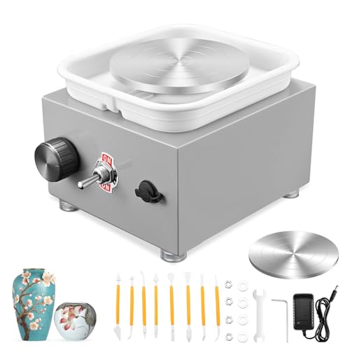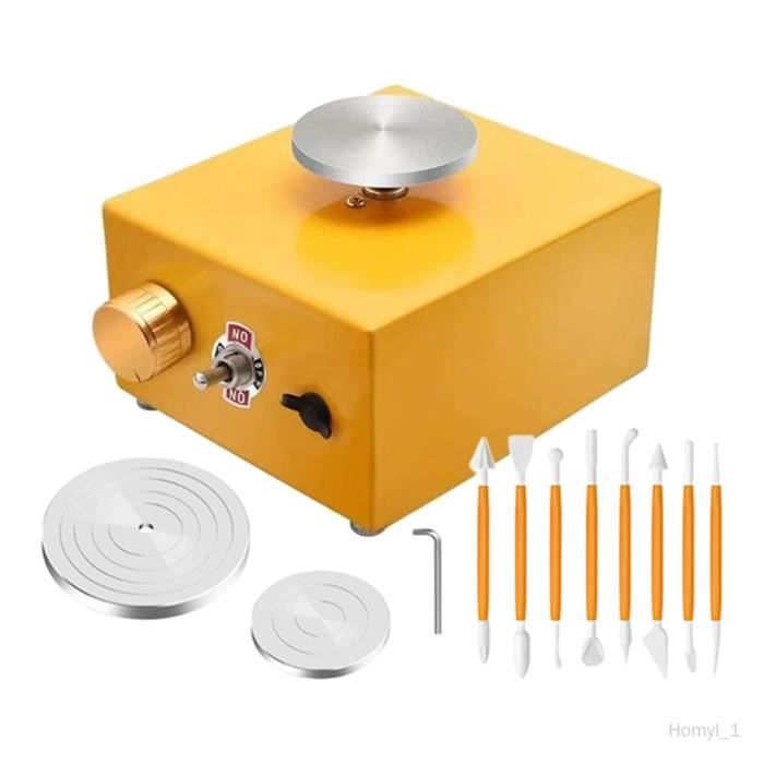 Roue de poterie électrique pour débutants, contrôle de la pédale des Pieds et Plaque tournante détachable, Machine à argmenter sans Cuisson pour Les Enfants... 【Système d'exploitation axé sur l'hygiène】 La fonction de pause du commutateur du pied empêche la contamination de l'argile - l'interrupteur rotatif maintient la propreté pendant les processus de sculpture désordonnés 【Normes de nettoyage de qualité industrielle】 Composants entièrement amovibles résiste aux cycles de lave-vaisselle hebdomadaires, conforme à l'accord britannique d'hygiène des jouets CA65 Plaque Tournante Amovible Enfants Adultes PEIXEN Roue De Poterie électrique Pour Débutants, Contrôle De La Pédale Tour De Poterie Adulte Spécifications du produit Nom du produit: roue de poterie en céramiqueMatériel produit: ABSCouleur: gris / vertDimensions du produit: 22 x 21 x 10 cmPoids: environ 1,7 kgContenu du package: Roue de poterie en céramique × 1Roue de poterie électrique × 1Pédale de pied × 1Câble d'alimentation × 1Outils de gravure × 1Dessin stylos × 1Notes: 1., Les dimensions sont mesurées manuellement et peuvent avoir des écarts mineurs. Vitesse réglable à l'infini : la machine électrique de roue de poterie a un réglage de la vitesse infinie (réglage avant et arrière) et une fonction de pause de pédale, ce qui peut contrôler avec précision votre fabrication de poterie et rendre le traitement de la poterie plus pratique Cette roue de poterie électrique convient aux débutants et aux artistes expérimentés, ce qui en fait le choix idéal pour créer de belles pièces de poterie. Roue de poterie électrique de 24,9 cm en céramique, avec pédale et