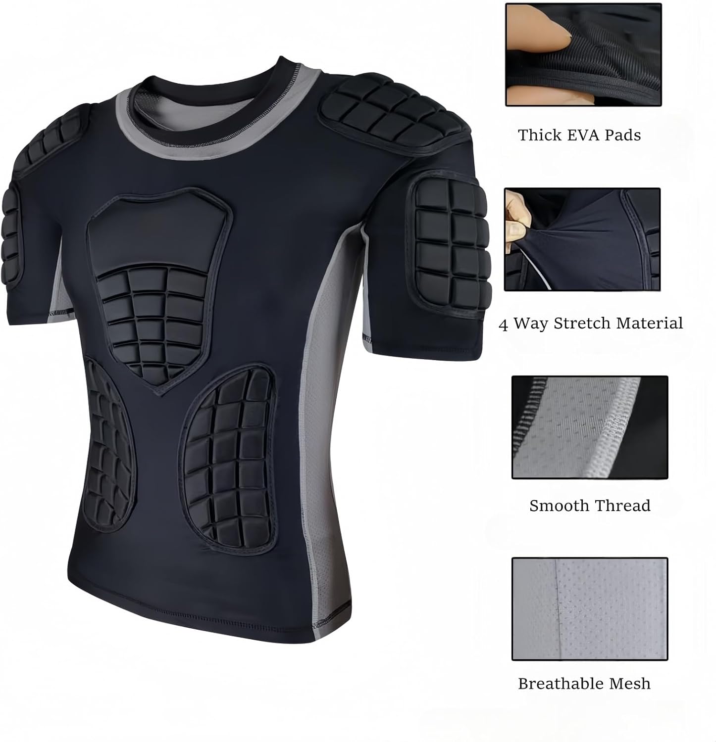 Coutures : coutures renforcées à 4 aiguilles et 6 lignes Informations sur les tailles : S : longueur : 66 cm, poitrine : 90 cm, taille suggérée : 155-165 cm, poids suggéré : 52 - 62 kg. L : longueur : 70 cm, tour de poitrine : 102 cm, taille suggérée : 175-185 cm, poids suggéré : 72 - 82 kg. Si vous préférez une coupe ample, choisissez une taille plus grande. Entretien : lavable en machine. T-shirt de protection rembourré à compression pour homme M : longueur : 68 cm, tour de poitrine : 96 cm, taille suggérée : 165-175 cm, poids suggéré : 62-72 kg. Pourtant, le design sans manches assure une rotation illimitée des épaules pour lancer, attaquer ou frapper Composition : 82 % nylon, 18 % élasthanne, évacuation de l'humidité et respirant., Mousse EVA. 6 coussinets épais en EVA : les t-shirts de compression rembourrés de football conçus avec 6 rembourrages stratégiquement placés sur la poitrine, les côtes... Entretien facile : le gilet de compression rembourré est lavable en machine, facile à entretenir. Les coussinets stratégiquement placés absorbent les chocs sur votre poitrine, vos côtes et vos épaules – zones critiques vulnérables dans les sports de contact. Remarque : Veuillez choisir la taille selon notre tableau des tailles. Gilet Protection Rugby Hockey Chemise Rembourrée Pour Enfants, Chemise De Protection Poitrine De Baseball, Protection Du Dos Côtelé Pour Football, Crosse, Gardien De But Et Compétition Sportive YXL Protection Côtes épaules Évacuation de l'humidité et ajustement de compression : la compression musculaire améliore la circulation sanguine, réduit la fatigue et accélère la récupération. Le tissu respirant et léger vous garde au frais et au sec en évaporant rapidement la transpiration Le tissu respirant et léger vous garde au frais et au sec en évaporant rapidement la transpiration