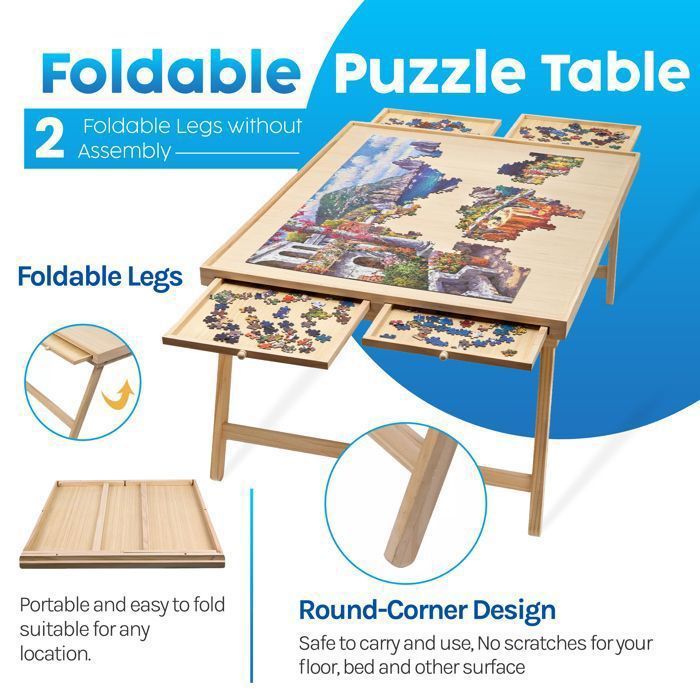 Haushalt International Table Puzzle XL 1000 à 1500 Pièces Couvercle protecteur transparent et surface en feutrine antidérapante : Le couvercle transparent protège votre puzzle de l’eau, de la poussière et des animaux domestiques, tandis que la feutrine antidérapante maintient les pièces bien en place, garantissant une expérience de puzzle organisée et ininterrompue. Support Puzzle 1500 Pièces Adulte ALL4JIG Table De Puzzle De 1500 Pièces Pour Adultes, Table De Plateau Puzzle 2000 Pieces Cette amélioration assure une utilisation plus stable et garantit une expérience de puzzle sûre et sans oscillation. Conçue pour accueillir des puzzles pour adultes de 1 000 à 1 500 pièces, cette planche pliable allie fonctionnalité, portabilité et confort dans une configuration élégante Ne perdez plus jamais une pièce : les planches de puzzle sont livrées avec 4 tiroirs à poignées qui stockent en toute sécurité plus de 1 000 pièces, organisées... Un cadeau réfléchi et pratique qui apportera joie et utilité à chaque occasion. ASSEMBLAGE FACILE : La table de puzzle est simplement construite et dispose d’instructions de montage claires et précises, permettant une installation rapide tout en conservant tous les avantages fonctionnels. Soutenus par une équipe d’assistance professionnelle, nous offrons une garantie qualité d’un an qui garantit à nos clients une expérience d’utilisation sans souci. Stabilité renforcée : Les pieds de la table sont renforcés par un support arrière en bois, ce qui augmente considérablement la stabilité globale. CADEAU PARFAIT POUR LES AMOUREUX DES PUZZLES : Non seulement une table de puzzle, mais aussi polyvalente pour les jeux de société, le thé de l’après-midi ou même le travail. Hauteur réglable : La table de puzzle dispose de hauteurs ajustables pour s’adapter aux utilisateurs de différentes morphologies, garantissant une expérience ergonomique et confortable pour tous.