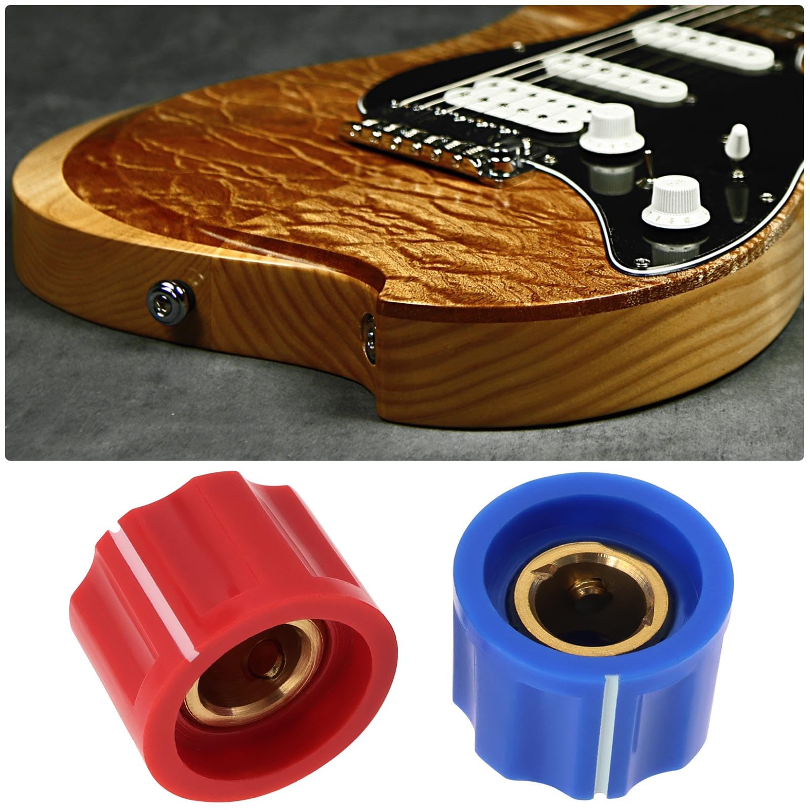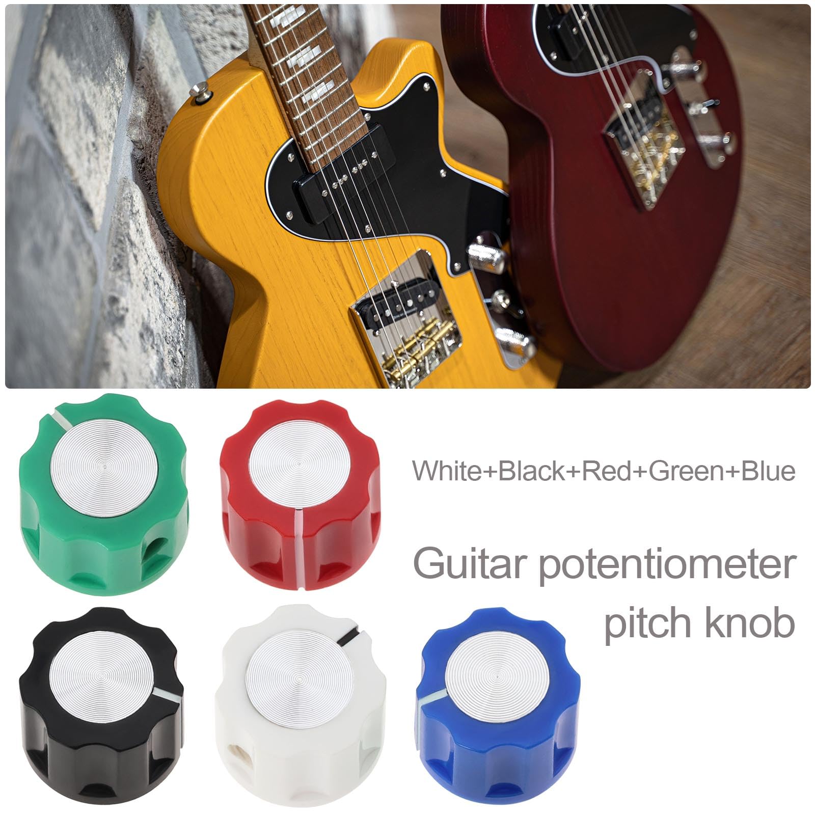FRED'S PART - Boutons Potentiomètre LesPaul KN11G2 - Ferré Musique - Le spécialiste de la... Style classique et simple, surface bien traitée, aspect lisse et toucher confortable. Le diamètre supérieur du bouton est de 16 millimètres, le diamètre du trou de la tige est de 6,4 millimètres et la hauteur est de 12 millimètres. Boutons Volume Effet Boutons De Réglage De Guitare - DIOCHE - Ensemble De 6 - Ébène Et Métal - Durable - Élégant Accessoire Guitare Bouton Tonalité Largement utilisé dans les boutons de pédale d'effet de guitare, les boutons de commande d'amplificateur, les accessoires de guitare avec axe de contrôle de 6,4 mm, et utilisé pour contrôler les effets de diverses fonctions telles que le niveau, la vitesse et le son. Akozon 3 Boutons de Potentiomètre de Guitare Électrique en Métal Résistant Universel avec... Item Specifications Type:Bouton de potentiomètre Matériel:Plastiques, métal Applicable au diamètre du trou d'arbre:6,4 mm Diamètre supérieur du bouton:16 mm Hauteur:12mm Couleurs:Noir, blanc, rouge, vert, bleu Package 5 pièces boutons de potentiomètre 5Pcs 6mm Potentiomètre Contrôle Boutons pour Guitare Volume