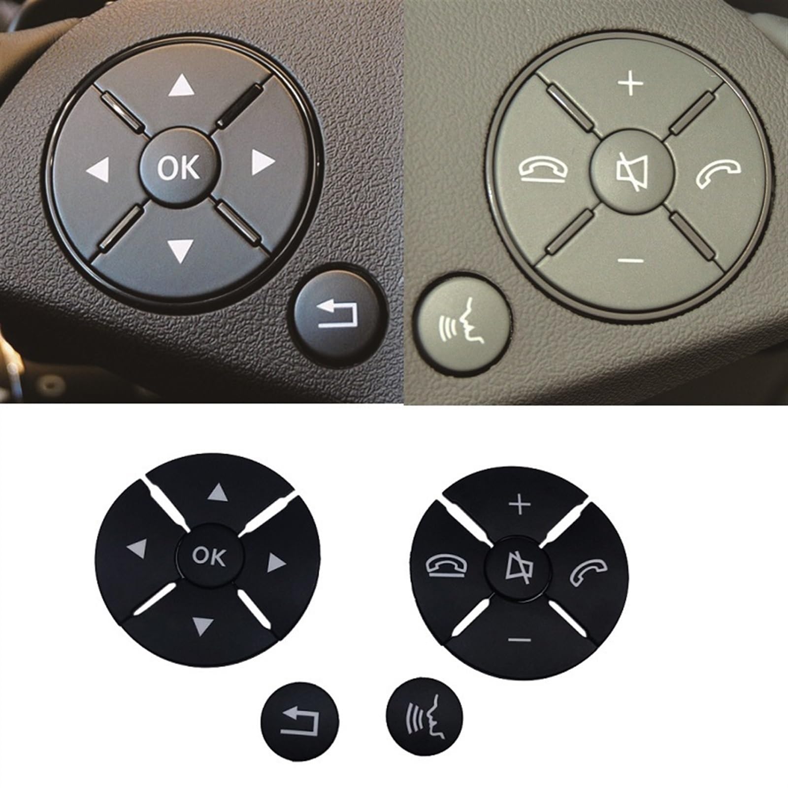 Garniture d'autocollant couverture bouton volant convient pour Benz C E BOUTONS DE VOLANT uniques pour MercedesBenz W204 W212 X204 W207... Autocollant ABS PC Kit De Réparation De Couvercle De Commutateur De Boutons De Volant De Voiture, Garniture Pour Mercedes Benz 204, Classe C, GLK, X204, Classe E, W212 Stickers Volant W204 W212 W221 X204 Boîtier de télécommande de clé Intelligente 3 Boutons pour Mercedes... [Installation facile] Retirez le ruban adhésif à l'arrière, collez-le directement sur le bouton du volant et appuyez dessus pour le coller. [Excellent remplacement] Le design radian de voiture d'origine, la transmission de la lumière est aussi bonne que l'original, parfait pour remplacer le bouton de pelage cassé.