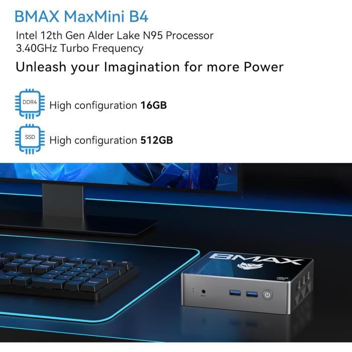 N150 Mini PC*1, support VESA*1, câble HDMI*1, alimentation électrique*1, manuel d'utilisation*1 Nous fournissons un support technique à vie et une garantie de satisfaction de 12 mois, n'hésitez pas à nous contacter si vous avez des questions. Mini PC Silencieux économique DREAMFYRE Mini PC N95 16 Go De RAM 512 Go M.2 SSD, (jusqu'à 3,4 GHz Pc Bureau économique Compact 【Processeur Alder Lake-N95】Mini PC est construit avec un processeur Alder Lake-N95(jusqu'à 3,4GHz)4 cœurs et 4 threads, 6MB L3 cache, TDP 15W. Visual 4K y múltiples puertos: este mini PC de escritorio cuenta con gráficos 4K nítidos y múltiples puertos, incluyendo 3 puertos HDMI 2.0, 3 USB 3.0 y 1 Gigabit Ethernet, un mini PC de escritorio permite realizar múltiples tareas en tres pantallas 【Prend en charge l'utilisation simultanée de deux écrans】 Intel N95 assure un traitement plus rapide des images et une lecture vidéo 4K UHD@60Hz. Économie d'énergie, protection de l'environnement et faible consommation d'énergie. SUKOTOP ini PC 12e Alder Lake N (jusqu'à 3,4 GHz) 12 Go de RA 512 Go... Mini PC est livré avec 12GB DDR4 pré-installé et un 512GB M., 2 SSD intégré. Le mini ordinateur offre des performances fiables et stables avec une latence réduite et de puissantes capacités de chargement et de traitement pour une expérience plus fluide. Le support de montage inclus permet au mini pc d'être monté à l'arrière du moniteur ainsi que sur le mur ou sous la table, libérant ainsi plus d'espace. NiPoGi Mini PC Alder Lake N97(jusqu'à 3.6GHz) 16 Go DDR4/512 Go M.2 SSD 【Puce puissante et mémoire suffisante】Ce mini PC est équipé d'un processeur Intel Celeron Alder Lake N95 (jusqu'à 3,4 GHz) préinstallé avec Pro (64 bits) Gen 12 4 cœurs, 4 threads. La conception de l'évent multilatéral maximise la dissipation de la chaleur.