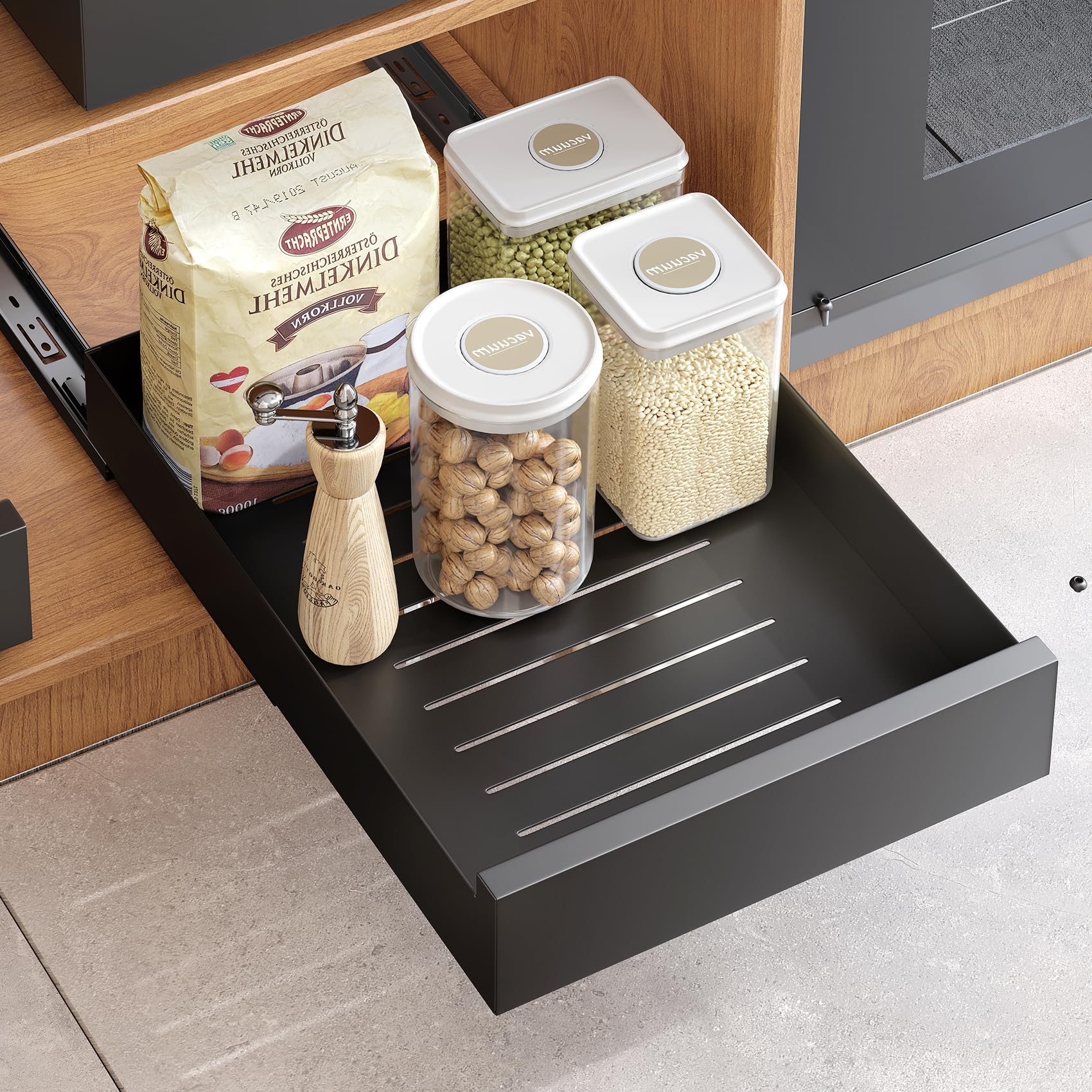 Si vous avez des questions avant d'acheter ou après avoir reçu le produit, n'hésitez pas à nous contacter, nous vous fournirons le meilleur service ! Description du produit Spécifications du produit : Évolutif et extensible. En quelques étapes seulement, vous obtiendrez un organisateur coulissant complet pour armoire. Parfait pour votre cuisine, salle de bain, sous l'évier et le garde-manger. Profondeur intérieure minimale de l'armoire : 41,9 cm. Cet organisateur d'armoire coulissant a une construction robuste et de haute qualité qui permet de stocker un grand nombre d'articles tout en conservant sa robustesse, idéal pour maximiser l'espace sous l'évier ou dans les armoires de toilette. Facile à installer - Tiroir coulissant de haute qualité fixé avec un film nano adhésif, pas besoin de percer ni de clouer. Dimensions : (32,5 à 52,1 cm) de largeur x 41,9 cm de profondeur x 6,1 cm de hauteur. - Étagères coulissantes robustes Organiseur de tiroir coulissant, organisateur d'armoire à tiroirs extensible pour base de cuisine. Organiseurs de Tiroirs de Cuisine Tiroir Coulissant Placard de Cuisine... Parfait pour l'organisation de votre cuisine, salle de bain et garde-manger. C'est parfait pour vous, car vous n'aurez plus à perdre de temps à vous battre avec un système sous l'armoire qui se coince, se casse ou est trop bruyant. Optimisez l'espace de votre armoire de cuisine. Ces étagères coulissantes coulissantes sont fabriquées à partir d'une plaque métallique épaisse qui est facile à installer et sont fabriquées avec un système coulissant qui peut supporter la charge de poids tout en restant lisse. - Tiroir coulissant lisse IPREC Tiroirs Télescopiques pour Aroire, Panier étallique Siple Vous pouvez tirer le meilleur parti de l'espace de votre placard et fournir un accès facile à toutes vos casseroles, poêles, ustensiles de cuisine, produits de nettoyage, aliments et autres articles. Glissières À Tiroir À Extension Complète -Lot De 4, Rails Télescopiques... Les dimensions de l'organiseur coulissant pour armoire de cuisine mesurent 41,9 cm de profondeur x 6,1 cm de hauteur x 32 cm de largeur, et la largeur peut être étendue jusqu'à 52,1 cm. Organiseur Tiroir Coulissant Organiseurs Noir, Tiroirs Télescopiques Extensibles, Boîtes De Rangement En Acier Au Carbone Pour Garde-manger De Cuisine, Sans Percage, 1 Paquet(31-52cm L X 42cm P X 6cm H Tiroir Coulissant Cuisine La nouvelle conception adhésive en nylon le rend facile à installer tout en offrant une excellente stabilité. Vous pouvez ajuster les tiroirs coulissants à la base de vos armoires de cuisine selon vos besoins. Notre organisateur de tiroir de cuisine avec rail de guidage d'amortissement, le rail de guidage d'amortissement a été testé par 4W d'ouverture et de fermeture, il peut glisser en douceur sans bruit désagréable. Les organisateurs d'armoires coulissantes vous permettent d'accéder plus facilement aux casseroles, poêles, couvercles, bouteilles, mixeurs sur socle et autres accessoires de cuisine. GAIN D'ESPACE - Nos tiroirs coulissants pour armoires sont une solution peu encombrante pour les petites cuisines.