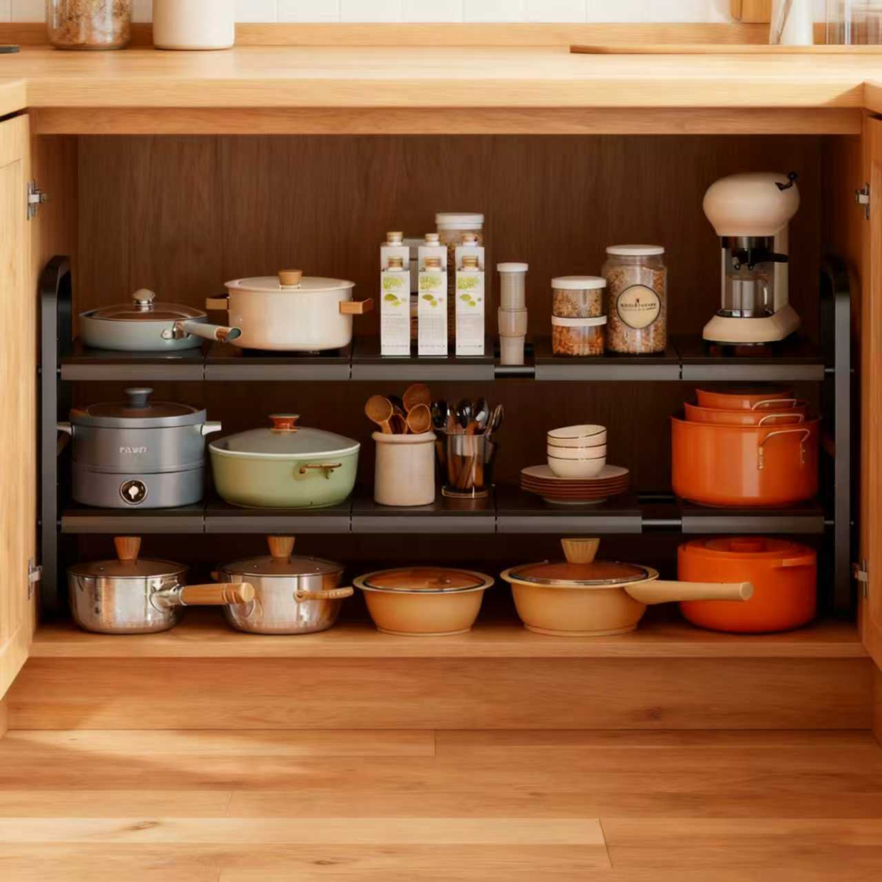 Si vous rencontrez des problèmes ou des préoccupations, notre équipe de service client dédiée est disponible pour vous aider. Organisateur Comptoir Réglable Étagère De Rangement Extensible Pour Placard De Cuisine, étagère à étagère 3 Niveaux Extérieur Fabriquée en acier au carbone durable et en fer, cette étagère réglable dispose d'une élégante finition noire qui complète tout décor de cuisine. Trois niveaux de ce support, conçus pour vous offrir à la fois espace et visibilité afin que vous puissiez stocker les articles dont vous avez besoin autant que possible. La fonction extensible de cet organisateur de rack le rend unique. Posez-le simplement et agrandissez-le à la taille dont vous avez besoin pour un organisateur de stockage personnalisé. Cette étagère à plusieurs... Cet organisateur polyvalent permet un rangement pratique de votre micro-ondes, grille-pain, cafetière ou autres appareils de cuisine. Le design réglable de cette étagère à micro-ondes permet une personnalisation pour s'adapter à vos besoins spécifiques. Étagère À Épices Extensible En Bambou À 3 Niveaux – Organiseur D... Conçu pour la stabilité et la durabilité, ce support à micro-ondes à 3 niveaux est fabriqué en acier au carbone avec un revêtement antirouille pour un entretien facile. La longueur peut être facilement ajustée entre 40 et 64 cm, tandis que les dimensions spacieuses de 37 cm de largeur et 79 cm de hauteur offrent un grand espace de rangement. La longueur peut être ajustée de 40 à 64 cm, tandis que la profondeur varie de 32,5 cm. Étagère de rangement de cuisine Étagère organisateur de comptoir Étagère à vaiss Inclus dans la livraison : 1 étagère à micro-ondes et 6 crochets, vous permettant de ranger facilement divers accessoires de cuisine. Au-delà de la cuisine, cet organisateur polyvalent peut être utilisé dans diverses zones de votre maison ou de votre bureau.