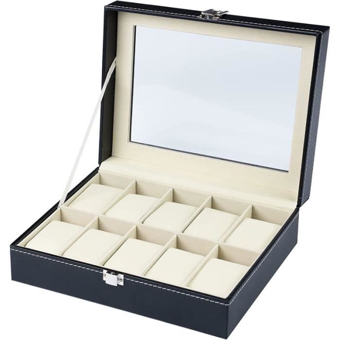 Idéal pour présenter vos montres dans un magasin ou sur votre coiffeuse. Coffret lux en simili-cuir noir pour 12 montres de collection Le forfait comprend: 1 boîte de montre (sans emballage de vente au détail). Boîte à Montres Similicuir Noir Boite A Montre De Rangement Noir 10 Slots | Boites Lefiguet étui Pliable Pour Rangement Montres Ou Bijoux Caractéristiques : Parfait pour un usage personnel et professionnel, également idéal pour les bijoux à la maison. Protégez la montre et gardez-la propre. Coffret De Montre Similicuir Velours Noir (5/7) (D'occasion) à... Idéal pour afficher vos montres dans un magasin ou sur votre coiffeuse. Couleur : noir, bleu foncé, café, rouge., Quantité : 1 pièce. Boite 15 montres stackers empilable, Module2 noir et gris exécutif. Cuir végan. Creez votre propre boite de rangement avec de multiples modules empilable Dimensions : environ 10,5 x 8 x 5,8 cm. Empêche efficacement la montre/bracelet d'être endommagé et rayé. Remarque : les mesures sont prises à la main, les tailles indiquées peuvent donc varier de 1 à 3 cm. Produit de qualité supérieure. Matériau : similicuir ; taille : environ 10,5 cm x 8 cm x 5,8 cm.