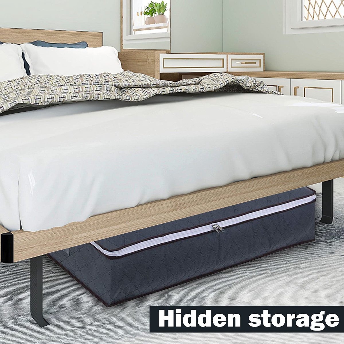 Lot de 6 sacs de rangement sous vide pour vêtements, enroulables, sacs... Le sac de rangement/organisateur de placard est fabriqué en tissu non tissé composite à trois couches de haute qualité, inodore et résistant à l'eau, pour garantir que vos vêtements ou autres contenus sont exempts de poussière et d'humidité Boîtes De Rangement Pliables En Tissu: Organisateur De Grande Capacité Pardick Grands sacs de rangement pliables en tissu épais pour