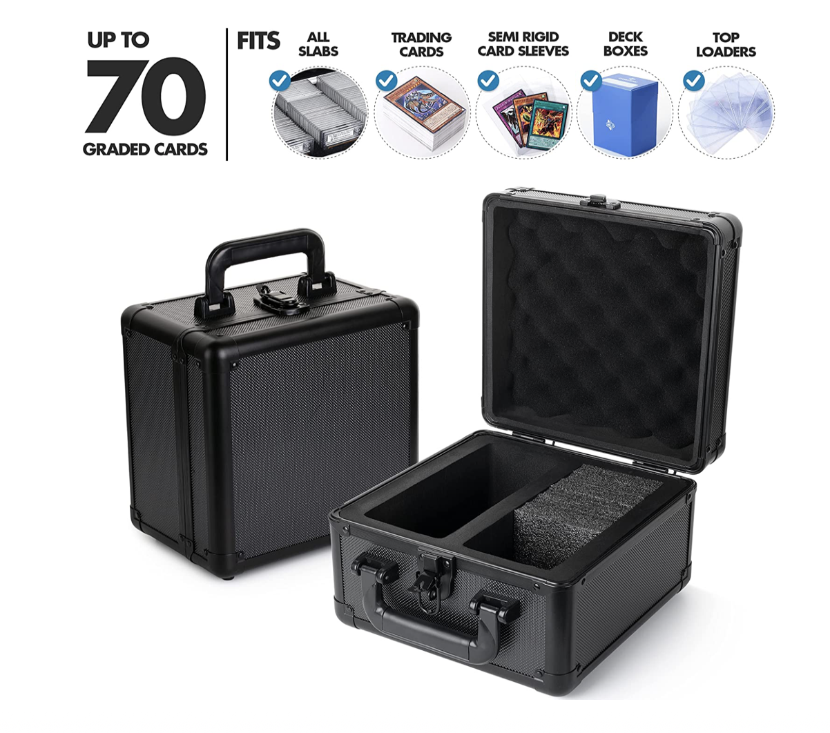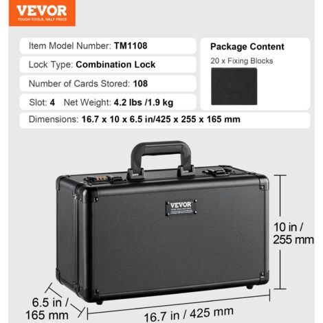 Optimisez le stockage de votre collection avec notre solution haute capacité. VEVOR Carrera de obstáculos Ninja Warrior para niños, 2 x 65 pies resistentes a Les pieds en caoutchouc absorbant les chocs offrent stabilité et amortissent les impacts, garantissant que vos cartes restent protégées même en cas de chutes ou de collisions accidentelles. étui Transport Cartes Sport Avec Séparateurs Mousse Rangement Toploader VEVOR Boite De Rangement Pour Cartes Gradees, 4 Emplacements, Etui De Transport Pour Cartes De Sport Gradees Avec Separateurs Mousse, Verrou A Cle, Pour 108 PSA, 76 BGS, 84 SGC Coffret Sécurisé Clé Parfait pour les collectionneurs ayant besoin d’un espace de stockage généreux. Compatible avec différentes tailles de cartes : notre boîte de rangement pour cartes dispose d'une fente élargie de 90 cm qui peut accueillir différentes tailles et types de cartes. Présentation du produit Boîte de rangement pour cartes graduées 108 PSA avec serrure à clé Présentation de notre étui pour cartes graduées comprend un emplacement pour carte élargi de 3,5 po/90 mm et 20 inserts en mousse flexibles, peut accueillir jusqu'à 108 cartes graduées PSA et est compatible avec PSA, BGS, SGC et TOP LOADERS. Le mécanisme de serrure, accompagné de 2 clés... Profitez de la commodité et de la mobilité avec notre solution de stockage portable. Pour plus de sécurité, vous pouvez modifier périodiquement la combinaison pour améliorer la sécurité de la box. GRADIT | Présentoir pour cartes gradées (PSA Vos cartes resteront organisées et protégées ! Avec 20 séparateurs en mousse flexible, il maintient solidement toutes les cartes de sport classées en place, évitant ainsi tout déplacement pour minimiser l'usure et la déformation. Coque durable, conçue pour durer : notre étui porte-cartes PSA est fabriqué avec un cadre en aluminium et des coins métalliques renforcés, conçus pour résister à une utilisation fréquente et aux conditions difficiles. Boîte de rangement pour cartes gradées haute capacité : offrant une grande capacité de stockage, notre étui pour cartes gradées peut accueillir jusqu'à 108 cartes gradées PSA, 76 cartes BGS, 84 cartes SGC ou 388 top loaders et plus encore. Équipé d'une poignée supérieure pour une prise en main confortable, il est parfait pour assister à des expositions et à des événements.