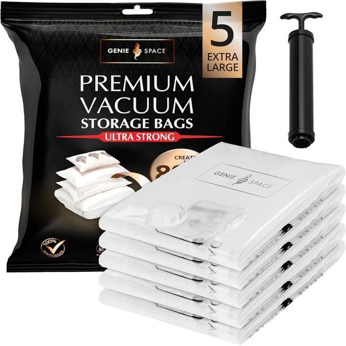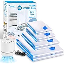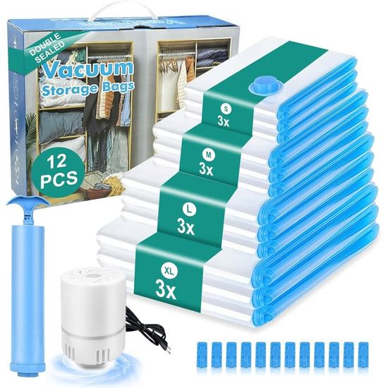 ✅【Set de 10 Pièces, Tailles Complètes】: Ce set multifonction de sacs sous vide comprend 3 très grandes (80x100 cm), 3 grandes (60x80 cm), 2 moyennes (50x70 cm) et 2 petites (40x60 cm), répondant à divers besoins de rangement. Économique en effort et efficace, il est particulièrement adapté pour résoudre rapidement les problèmes de rangement quotidiens ou de voyage, rendant l'emballage facile et rapide. ✅【Réutilisable et Durable】: Les sacs sous vide sont solides, durables et réutilisables, répondant à vos besoins de stockage à long terme, tout en étant écologiques et économiques. Après compression, vos vêtements libèrent plus d'espace dans votre placard, valise ou espace de stockage, rendant le rangement plus efficace. Sac Rangement Sous Vide Aspirateur, 12 Pièces Sacs à Vide Avec Pompe ✅【Pompe Électrique, Gain de Temps et d'Effort】: Le set inclut une pompe électrique qui aspire l'air rapidement, éliminant la corvée de la pompe manuelle. ✅【Économisez Jusqu'à 80% d'Espace de Stockage】: Utilisez nos sacs de rangement sous vide de qualité pour comprimer facilement des articles volumineux comme des couvertures, des oreillers ou de la literie, économisant jusqu'à 80% d'espace. FYY Lot de 4 sacs de rangement sous vide (2 jumbo 100x80cm, 2 grands 80x60cm), sac étanche pour... En quelques secondes, comprimez un énorme duvet à son volume minimal, rendant le transport en voyage ou le stockage dans le placard encore plus pratique. Matériau premium PA+PE sélectionné, combiné à une double fermeture Éclair scellée, assurant une excellente étanchéité à l'eau et à l'humidité, Protégeant efficacement vos affaires contre l'humidité et la poussière, les maintenant sèches et propres durablement. Il protège efficacement vos articles contre l'humidité et la poussière, garantissant que les objets stockés restent secs et propres. Housse Rangement Sous Vide NXPZ Sac De Rangement Sous Vide Avec Pompe Électrique, 10 Set 10 Sacs Compression Pompe électrique Ce set de sacs de compression sous vide est une solution idéale contre le manque d'espace, Fabriqué en matériaux de qualité, il compresse efficacement les articles volumineux comme les couvertures, oreillers et édredons, en économisant jusqu'à 80% d'espace de stockage ✨【Facile à Utiliser, Compression Instantanée】: Branchez la pompe électrique, appuyez sur l'interrupteur, et l'air est expulsé instantanément.