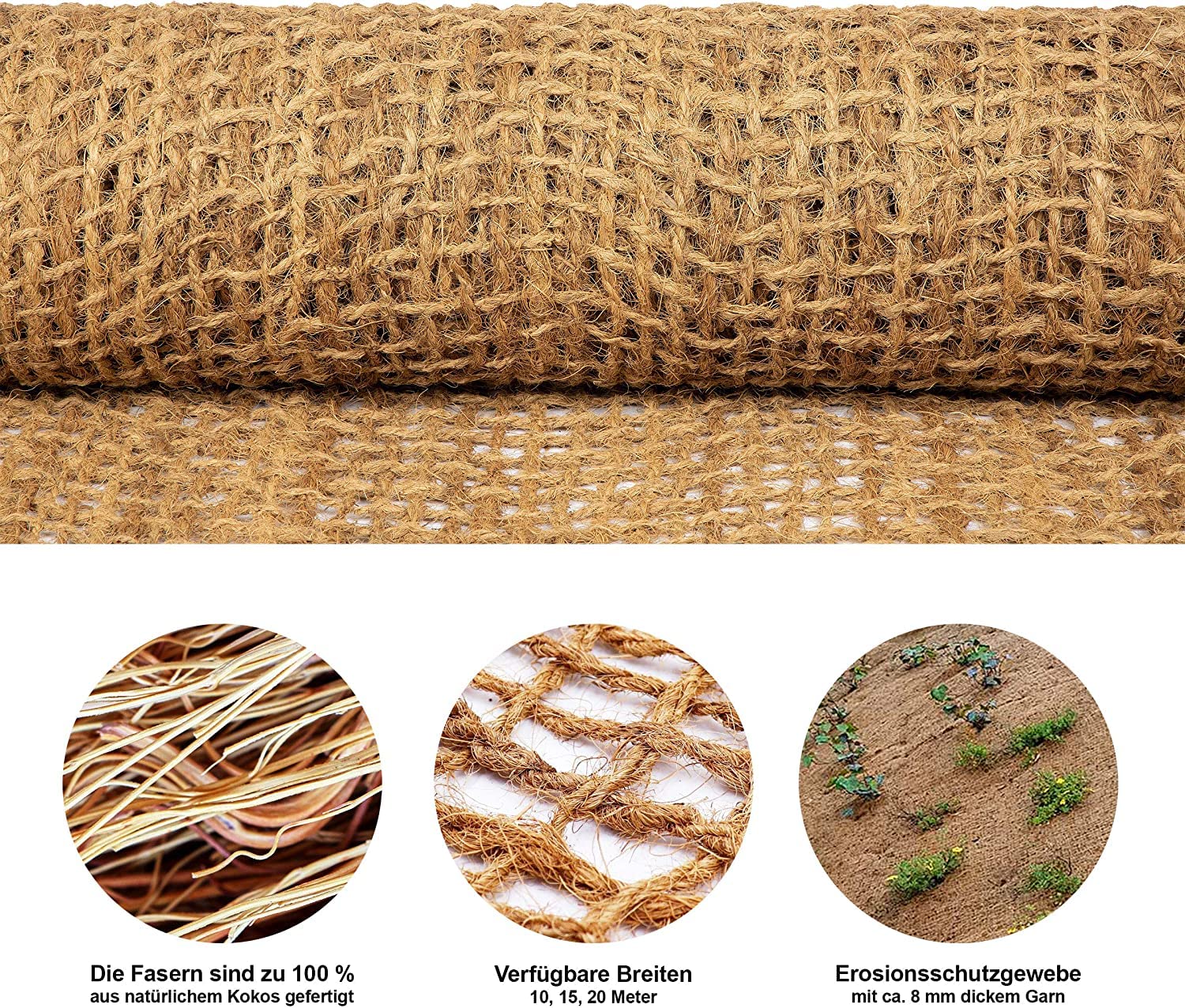 Les embouts peuvent ensuite être fixés au choix en creusant ou en les serrant. Champs d'application possibles pour la protection contre l'érosion. Stabilisation Sol Pente Floordirekt Tapis De Remblai 400 G/m² | 10 M - Protection Contre L Protection érosion Talus Jardin Floordirekt Tapis de remblai 400 g/m² | 15 m - Protection contre l'érosion pour le jardinage | Filet de remblai | Sécurité anti-pente | Fibres naturelles de coco | Résistant aux intempéries : : JardinMATÉRIAU En plus de l'utiliser comme protection contre l'érosion pour vos plantations dans votre propre jardin, le tapis de remblai est également adapté pour une utilisation publique dans les parcs et autres espaces verts. Tapis de remblai « Nature » : la protection naturelle contre l'érosion pour votre projet de jardin. Elle dépend des conditions d'emplacement, des conditions du sol, de l'eau, du climat et du risque d'érosion sur le terrain. Fixez les embouts en les enfoncant ou en les serrant. La pose du tapis se fait au mieux sur une surface préparée, sur laquelle le tapis de protection contre l'érosion est fixé sur toute la surface et sans vides au sol. Ainsi, votre végétation est suffisamment maintenue et les racines peuvent se développer de manière stable dans le sol, même en cas de plantation péjorative. MATÉRIAU : les fibres de coco 100 % naturelles protègent contre l'érosion et offrent une excellente capacité de rétention du sol. La durée de vie du tapis en coco est jusqu'à 36 mois. Tapis de protection de construction 400x400 en caoutchouc recyclé : antidérapant, résistant aux UV, -40°C à 120°C. Protège les surfaces intérieures et extérieures. Commandez maintenant Les pièces assemblées doivent avoir un excès de 10 à 20 cm. Polyvalent : idéal comme protection contre l'érosion dans le jardin, dans les parcs ou pour les projets de construction d'étang et de bricolage. Cela garantit une protection efficace contre l'érosion et donne à votre plantation la possibilité de pousser de manière constante même dans des conditions défavorables. Lot de 2 Paillassons d'Entrée Fibre de Coco Naturelle Antidérapant