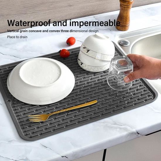 Lot De 1 Tapis De Séchage De Vaisselle, Noir, 30x40cm, Tapis 【Tapis de drainage en silicone】 : Les deux côtés du tapis en silicone sont conçus avec des arêtes profondes disposées pour former une rainure de drainage , ce qui maximise le drainage et la ventilation pour aider à sécher la vaisselle . Tapis Résistant Chaleur 230°C Gresunny Tapis De Séchage En Silicone Tapis Egouttoir Vaisselle Tapis Séchage Vaisselle Silicone 【Coussin en silicone de qualité supérieure】 : Ce coussin de séchage est fait de silicone de , ne contient pas de bisphénol A , est non toxique , sans BPA et ne contient aucune substance nocive , garantissant que vous et votre famille êtes en bonne santé et en toute sécurité utilisation Tapis de SéChage Vaisselle, Grand Tapis Egouttoir Vaisselle Tapis D... Tampon de Drainage Tapis de SéChage en Caoutchouc pour Vaisselle Super... Il peut être enroulé ou le coussin peut être plié en deux , ce qui est facile à ranger dans une armoire ou placard , et également pratique pour une prochaine utilisation 【Tapis de séchage résistant à la chaleur】 : Ce tapis de drainage en silicone peut être placé dans la cuisine pour ranger les casseroles et les ustensiles afin d'éviter les rayures entre les casseroles à haute température et les comptoirs . Non seulement pour le séchage de la vaisselle , des casseroles , des poêles , des assiettes , des couteaux , des fourchettes , des cuillères , des tasses et des ustensiles , mais aussi pour les coussins chauffants ou les coussins de table basse . Specification: Item Type: Drain pad Material: Silica gel Color: Grey, Green (optional) Size: Approx., 44*33*0., 6cm / 17., 3*13., 0*0., 2inch Weight: Approx., 324g / 11., 4oz Temperature Range: -40-230℃ Il a une bonne résistance à la chaleur et la plage de température est de 40 à 230 ° C . Il suffit de plier le tapis en deux et de le ranger.