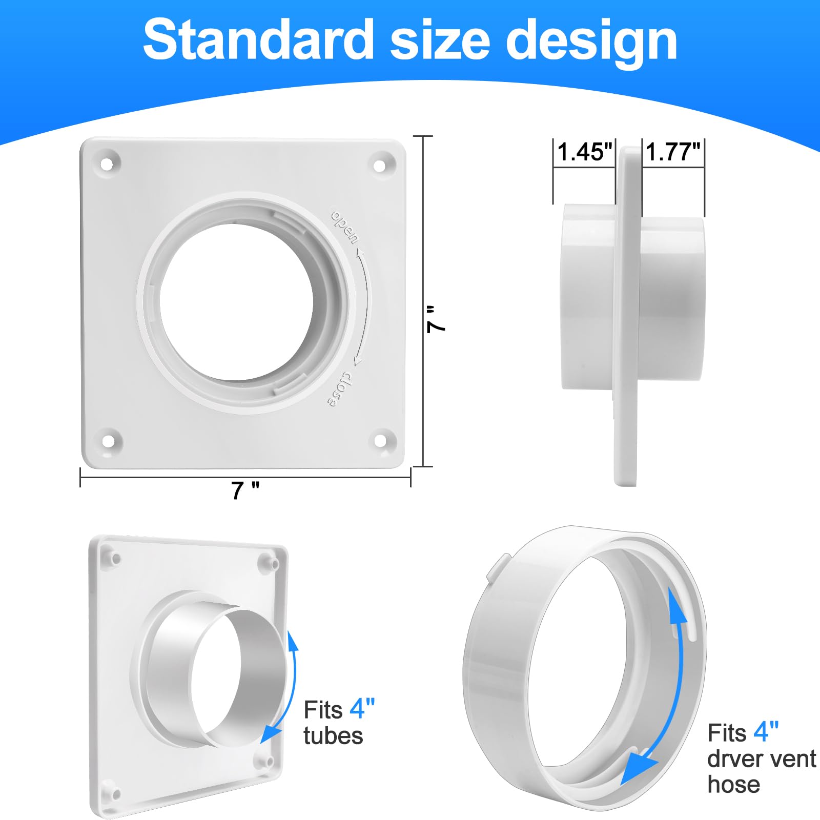 Adaptateur de conduit de sécheuse rond à ovale avec pince en acier Facile à installer et à démonter, il est également très performant. Accessoire Ventilation Sèche-linge Plaque Murale D'Aération De Sécheuse Avec Tuyau (4 Pouces 8 Raccordement Tuyau Flexible Sécheuse Conception polyvalente : Compatible avec la plupart des marques et conforme aux normes de l'industrie, notre bouchon evacuation climatiseur est large et simplifie les réparations. Photo libre de droit de Tuyau Dévacuation Extérieur De La Sécheuse... KIT CONNECTEUR D'AÉRATION de sécheuse efficace avec fonction de... Ventilation améliorée : Fabriqués à partir de matériaux résistants à la chaleur, ces connecteur tuyau climatiseur mobile garantissent une utilisation fiable et prolongent la durée de vie du système d'évacuation Protection idéale : Conçu pour votre sécurité et votre satisfaction, notre embout tuyau climatiseur mobile est soumis à des contrôles qualité stricts pour garantir une utilisation stable et sûre à haute température, sans risque d'incendie ni de fuite. Conception étanche et anti-fuites : Notre embout climatiseur mobile est doté d'une conception étanche et d'économies d'énergie, garantissant une efficacité accrue et des niveaux sonores réduits, sans fuites d'air. Spécifications du produit :Matériau : PlastiqueCouleur : BlancTaille : Convient aux tuyaux de 10 cm. Conception pratique : Aucun outil ni équipement spécial n'est requis pour l'installation de notre bouchon climatiseur mobile. Description du produit :1., Vous pouvez installer n'importe quel tuyau d'aération de 10 cm ou flexible de sèche-linge de 10 cm., 2., Vissez le raccord du tuyau d'aération du sèche-linge au mur, puis vissez le tuyau dans l'adaptateur.