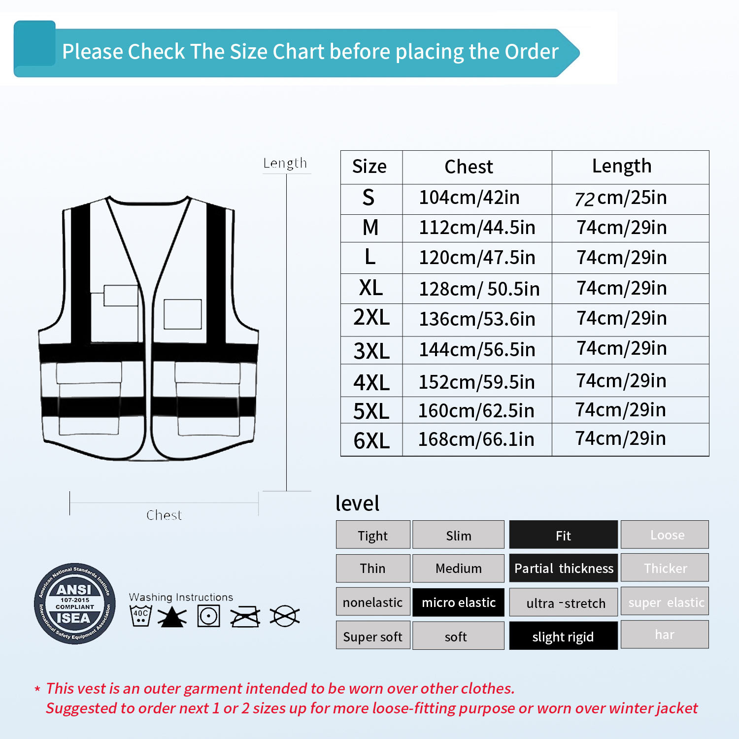 - Traitement des taches avec un détachant. Si pour une raison quelconque vous n'êtes pas satisfait de nos gilets, veuillez nous contacter, nous répondrons et résoudrons dans les plus brefs délais --Tydon Guardian Gilets de sécurité réfléchissants avec poches et fermeture éclair. Haute visibilité et réflectivité à 360° : gilets réfléchissants en maille bleu brillant, livrés avec des bandes réfléchissantes argentées de 5,1 cm à l'avant et à l'arrière qui offrent une meilleure visibilité dans toutes les conditions météorologiques et lumineuses Travailleurs municipaux, bâtiments, entrepreneurs, professionnels de la rénovation, ingénieurs, géomètres, forestiers, personnel d'entrepôt, valeurs, assistants au stationnement, agents de sécurité publique, équipage au sol de l'aéroport, gardien de sécurité de passage, etc. Construit pour durer : fermeture éclair frontale et 5 poches renforcées avec coutures serrées, bretelles noires, résistantes à l'usure. Visibilité améliorée mais non conforme à la norme ANSI 107., Application : Ce gilet de sécurité est idéal pour les entrepôts, les bénévoles de groupe, les événements publics, le cyclisme, la randonnée dans le parc, le jogging, les travailleurs des services publics, les services sociaux, les équipes d'enquête, etc. Léger et confortable. Ce gilet est conforme aux normes ANSI/ISEA, garantissant une haute visibilité et une réflectivité à 360° grâce à ses bandes réfléchissantes de 2 pouces sur le devant et le dos, assurant une visibilité accrue dans toutes les conditions météorologiques et lumineuses Marque Tydon Guardian, assurance qualité. Confortable et flexible : ce gilet réfléchissant est fabriqué en tissu tricoté 100 % polyester, léger et respirant. Restez en sécurité et préparez-vous à être vu ! Gilet De Securite Reflechissant Tydon Guardian Pour Les Femmes Hommes De Securite Haute Visibilite Poches Zipper Le Front Rencontre Ansi Isea S~p102507962 Si vous avez des préoccupations concernant les règles de sécurité, veuillez consulter votre agent de sécurité local pour obtenir des informations plus précises. Bandes réfléchissantes argentées haute performance de 5,1 cm. Poches et fermeture renforcées avec coutures ajustées, résistant à l'usure. Poches multifonctionnelles : ce gilet de sécurité est livré avec 5 poches avant pour un rangement spacieux. Ne pas utiliser d'eau de Javel ou d'adoucissant. Tydon Guardian Gilet de Sécurité Réfléchissant pour Femme Homme Haute Visibilité Sécurité... Gilet Fluorescent Pour Cycliste Jogging Tydon Guardian Gilet De Sécurité Réfléchissant Pour Homme Et Gilet Haute Visibilité Homme Conseils d'entretien : Il n'est pas nécessaire de le laver tous les jours si cela n'est pas nécessaire, lavage à la main recommandé. Tissu tricoté plus durable que le matériau en maille, mais toujours respirant., Lavable en machine. Fermeture avant douce avec fermeture éclair pour un accès facile.