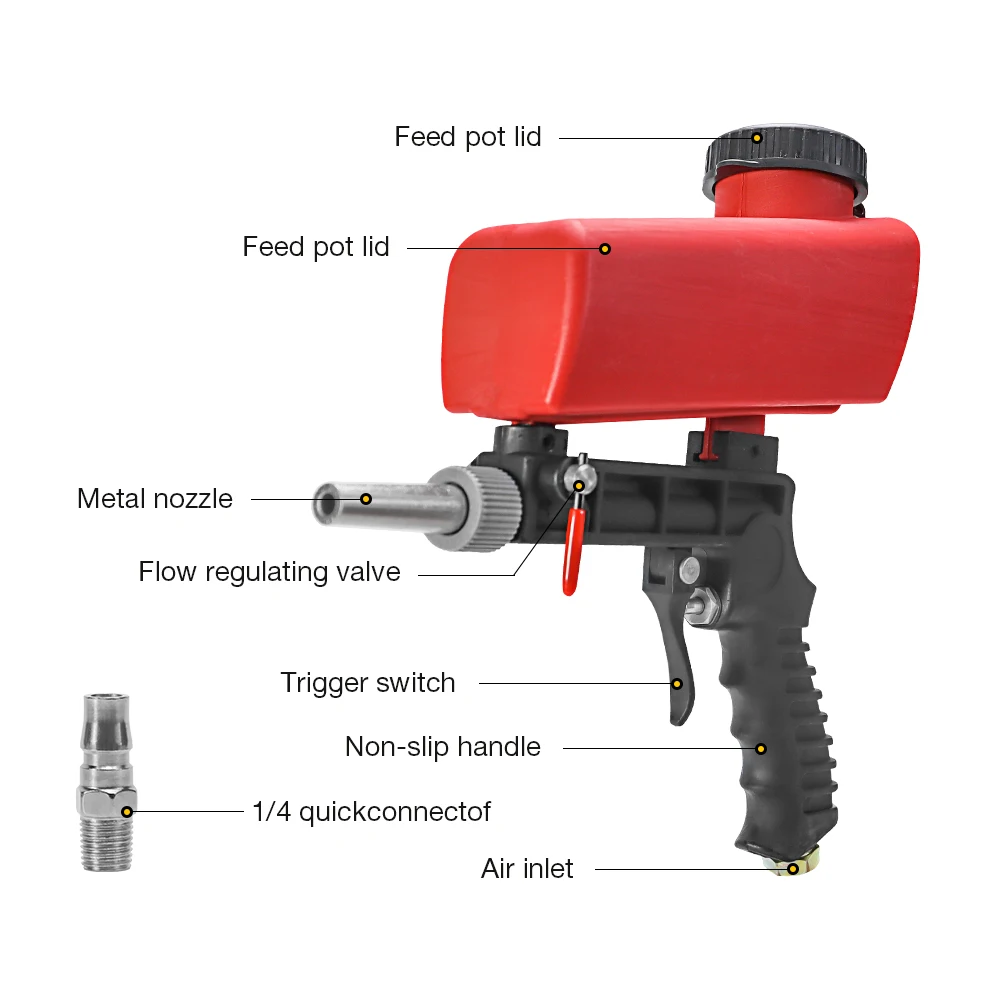 7 mm / 0,3 pouces, 13 mm / 0,5 pouces Longueur de la buse : env. Sous l'effet de l'impact et de la coupe, la peut obtenir certain degré de propreté comme l'élimination de la rouille , en même temps, elle améliore également la résistance à la fatigue de la pièce ; le sablage va donner à la une certaine rugosité, ce qui augmente L'adhérence entre les revêtements prolonge la durabilité du film de revêtement, et est également propice au lissage et à la décoration du revêtement. BON EFFET: Le sableur adopte une buse galvanisée épaissie, une paroi intérieure lisse, une faible résistance, une vitesse de sablage rapide et effet de sablage uniforme. 45 x 25 mm / 1,8 x 1 poDiamètre intérieur de la buse : env. Couleur Comme image Ensemble de pistolet de sablage pneumatique 67 mm / 2,6 pouces Utilisations : Utilisé pour la finition de détails tels que le polissage par pulvérisation, les bavures, l'élimination de la rouille, etc. Spécification : Type d'article : Pistolet de sablage pneumatiqueMatériel : plastique + alliage d'aluminium Capacité : 21 lbs Diamètre du trou de pulvérisation : env. Compacte et facile à utiliser, elle est idéale pour les petites surfaces ou les endroits difficiles d'accès. Avec une sableuse à main, vous pourrez obtenir des... PRATIQUE: Le pistolet de sablage à main est utilisé pour le sablage et le polissage, l'élimination de la rouille des métaux, la coupe des détails, etc. Le pistolet de sablage pneumatique est fabriqué en plastique de et en alliage d'aluminium, robuste et durable, utilise une poignée antidérapante de conception ergonomique, confortable à tenir, une gâchette en alliage d'aluminium, noyau de valve en acier haute dureté, largement utilisé pour les résidus, l'élimination de la rouille. Liste des colis : 1 x pistolet de sablage pneumatique 1 x réservoir d'alimentation 2 x buse Aerogommeuse Pour Meubles Couleur Ensemble D Petite Machine De Sablage Domestique De 90 Psi Pistolet De Sablage Pneumatique Professionnel FACILE À UTILISER: Le pistolet de sablage pneumatique utilise une poignée antidérapante de conception ergonomique, confortable à tenir, une gâchette en alliage d'aluminium, noyau de valve en acier haute dureté, facile à utiliser. Le pistolet de sablage pneumatique est utilisé pour le... LARGEMENT UTILISÉ: La machine de sablage est largement utilisée pour les résidus, l'élimination de la rouille, la remise à neuf de pièces anciennes, le nettoyage des impuretés à angle mort, l'atomisation, l'ébavurage, l'épilation, le dépôt de carbone, les scories de soudage, la peinture ou les marques d'usure, etc.