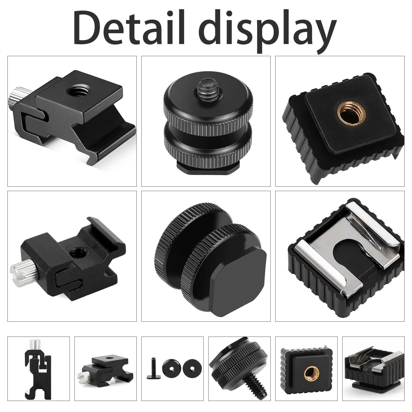 Adaptateur Métal Pour Trépied Flash INF Adaptateur De Sabot Flash Double Couche 1/4" (lot De 2) - Solution De Rotule Flash Sabot Rode DCS-1 Adaptateur de sabot de flash double - Foto Erhardt Support de filtre anti- pour microphone - YOSOO - Trépied réglable - Filtre double - Matériaux... Couleur du produit : noir. Champ d'application : base de sabot pour appareils photo, caméscopes, etc. Facile à utiliser : cet adaptateur de griffe pour appareil photo dispose d'une configuration facile avec des trous de vis précis de 6,35 mm qui vous permettent d'installer rapidement des trépieds, des flashs, des supports de microphone et d'autres accessoires Avec un design double couche et une construction en métal robuste, il peut être utilisé pour fixer en toute sécurité une variété d'équipements tels que des trépieds, des flashs et des pieds de microphone. Avec sa construction robuste, il offre une stabilité maximale de l'appareil photo lors de son utilisation Grande polyvalence : convient pour l'interface standard de la plupart des appareils photo et caméscopes sur le marché, cet adaptateur répond à divers besoins de photographie, que vous soyez un photographe professionnel ou un amateur, assurant une forte polyvalence et une adaptation diversifiée Double couche de 6,35 mm : avec une structure double couche, notre adaptateur de griffe de caméra offre des potentiels de connexion uniques et une stabilité accrue. Vis de montage sur trépied pour appareil photo flash, adaptateur de sabot chaud, touristes, 1-4...
