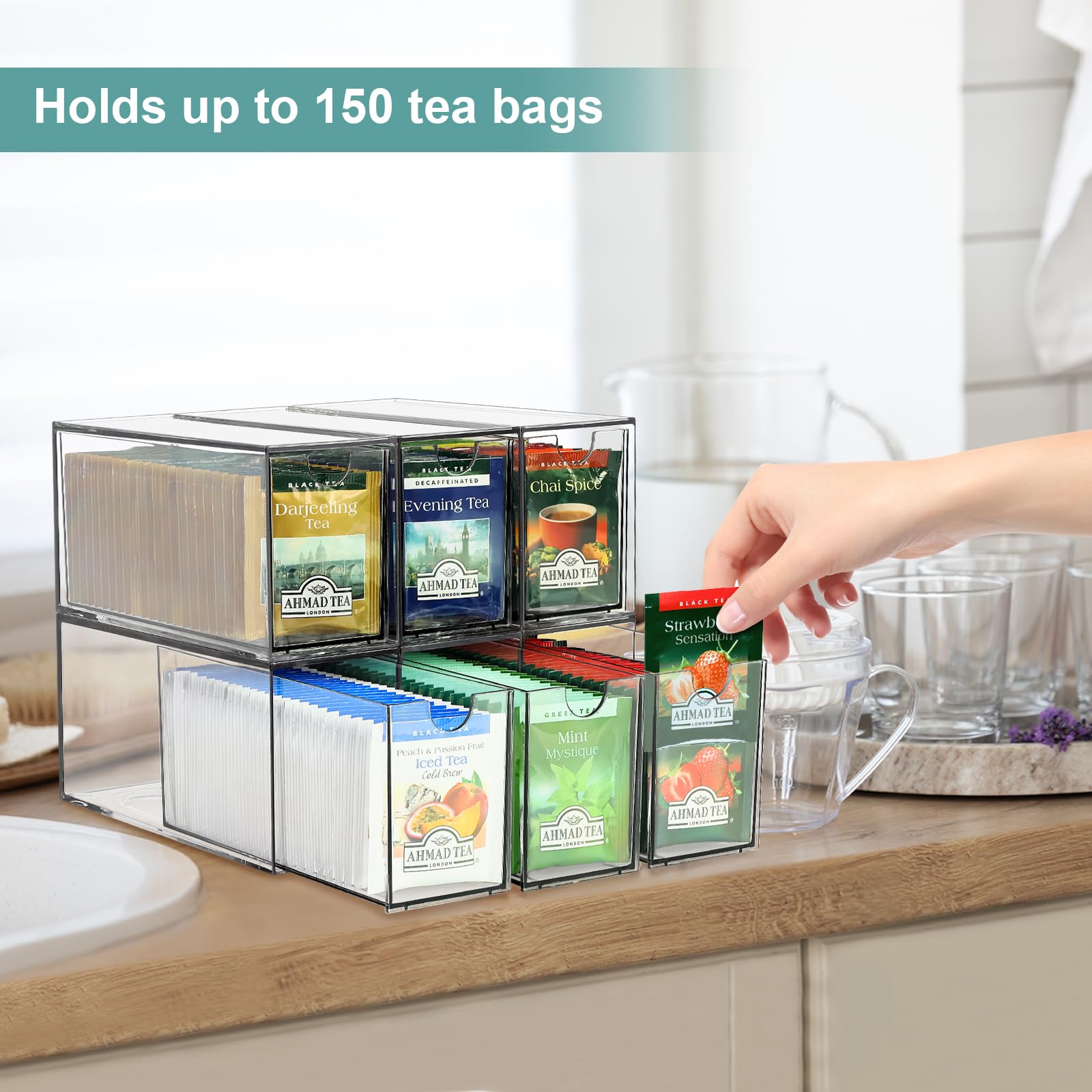 HyoConn Petite boîte à thé en acrylique transparent réglable pour... Gardez vos sachets de thé bien organisés dans votre cuisine, votre salon de thé, votre salon ou même dans votre café avec cet organisateur de sachets de thé en bois à 6 compartiments, vous permettant ainsi d'éviter les sachets de thé en désordre et de commencer une nouvelle journée de bonne humeur BEYGORM Organiseur De Sachets De Thé En Acrylique Pour 216 Paquets Boite Transparente Rangement Sorbus Bacs De Rangement, Avec