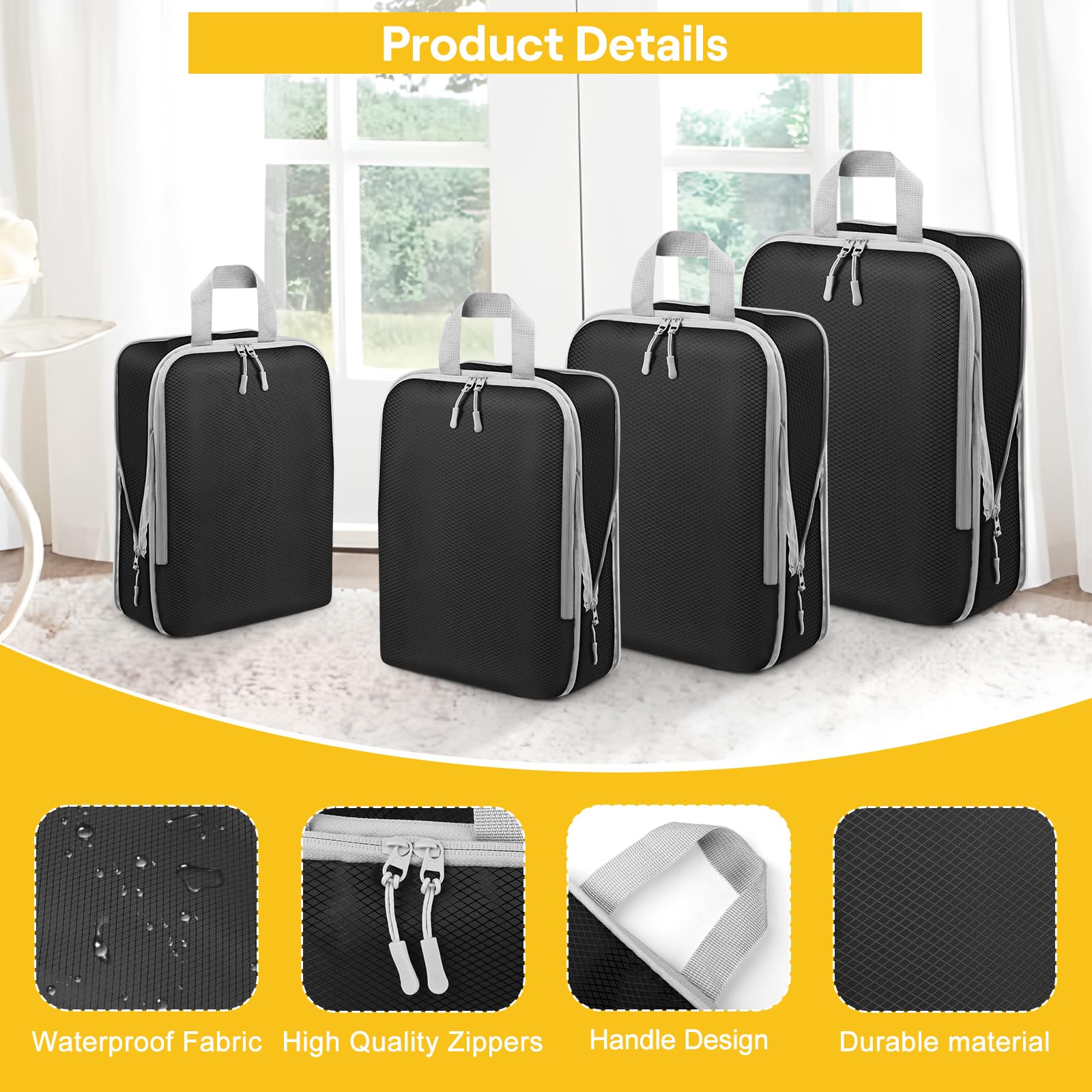 YuanDiann Lot De 8 Cubes De Rangement Pour Valises - Étanche - Bagages De Voyage - Sac à Vêtements - Organiseur De Valise Pour Cosmétiques, Vêtements, Chaussures, Bleu Marine Découvrez la commodité de nos cubes de voyage, la meilleure solution d'emballage pour tout voyage. Gardez vos affaires propres et bien rangées grâce à notre organiseur de valise, doté de capacités extensibles et de compression Lot 3 Sacs Compression Ensemble De Sacs De Rangement Compressibles Trois Pièces Cube De Compression Organisateur De Bagages De Voyage Pliable Sac De Voyage Organisateur Noir-6 Pcs Organiseurs Valise étanches MUCHER Lot de 3 sacs de rangement pour valises - Cubes de compression - Sac de voyage - Étanche - Trousse de toilette portable - Pour sac à dos, femme et homme Différentes tailles d'organiseurs de valise suffisent pour répondre à vos différents besoins. Set de sacs de voyage 7 pièces - Compression Packing Cubes... Lot de 3 sacs de rangement pour valises : ce lot de sacs de voyage dispose de 3 cubes de différentes tailles : comprend un grand sac de rangement, un sac de taille moyenne, un petit sac de rangement. Le sac à linge de voyage peut non seulement vous aider à ranger de petits objets. Organisé avec fermeture éclair : l'organiseur de trousse de toilette portable étanche MUCHER est équipé de fermetures éclair de haute qualité qui garantissent un fonctionnement fluide et une longue durée de vie, le meilleur pour l'ordre et empêche la perte d'objets. Cet organiseur de sac de voyage est un sac de rangement idéal pour les voyages et un usage domestique.