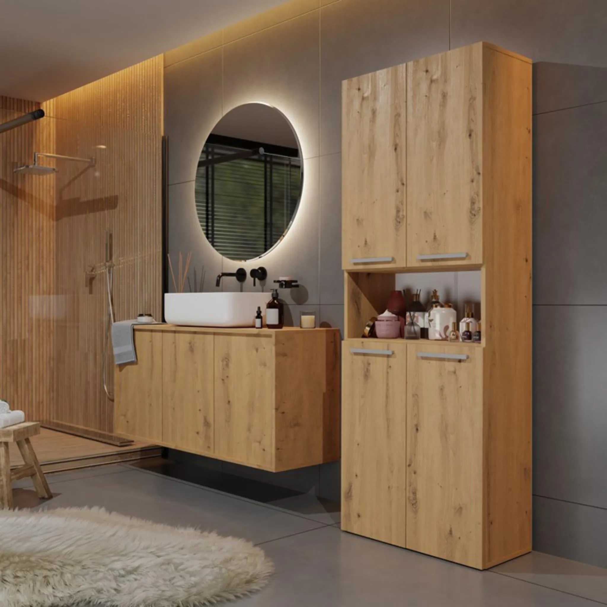 Rangement Salle De Bain Mdf Blanc Petite Etagere Wc Meuble Colonne De Salle De Bain 2 Porte 2 Étagères H 130 Cm - Blanc Mini Armoire Toilette Meuble Micro Onde Bufft Blanc t Brun 140cm avc 2 Tiroris t 4 Ports Vitrés, Étagèrs Réglabls, Salon/Sall à Mangr au millur prix Meuble Salle de Bain Rangement, Armoire Salle de Bain avec 2 Tiroirs... Avec deux portes qui s'ouvrent et se ferment facilement, vous pouvez accéder aisément à vos ustensiles de bain. Le compartiment supérieur ouvert permet de ranger des serviettes, du papier toilette et des produits de nettoyage. Son design intemporel lui permet de s'adapter à différents styles d'aménagement, et peut être utilisée dans d'autres pièces selon vos besoins. Description du produit Armoire basse de salle de bain Notre armoire de salle de bain est la solution parfaite pour organiser votre salle de bain avec style tout en créant un espace de rangement supplémentaire. Description : - meuble bas pour salle de bain au design élégant- avec 2 portes et un compartiment de rangement ouvert- offre de l'espace de rangement sur 3 niveaux- stabilité assurée par quatre pieds robustes- s'adapte facilement à toutes pièces de votre maison- montage facile et rapide Matière : - corps du meuble : MDF - portes : PVC (effet rotin) Dimensions : - totales (hauteur x largeur x profondeur) : 80 x 60 x 28 cm- hauteur du compartiment ouvert : 19 cm- hauteur des portes : 45 cm Couleur : blanc Contenu de la livraison : 1 x armoire de salle de bain Produit de la marque : [en. Rangement supplémentaire : Dotée d'un espace de rangement à l'intérieur du meuble, cette armoire offre un espace pratique pour organiser vos articles de toilette, serviettes et autres accessoires de salle de bain, contribuant ainsi à maintenir votre espace bien rangé et organisé. Stabilité renforcée : Les quatre pieds robustes assurent la stabilité de l'armoire, garantissant qu'elle reste solidement en place, même lorsqu'elle est pleinement chargée. Armoire de salle de bain polyvalente et fonctionnelleOptimisez l’espace de votre salle de bain avec cette armoire pratique qui combine design épuré et fonctionnalité maximale. Conçue pour accueillir tous vos essentiels, elle transforme votre pièce en un lieu organisé et harmonieux.Rangement intérieur modulable Étagères ajustables : Deux niveaux réglables en hauteur pour s’adapter...