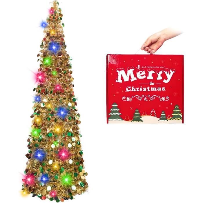 Cadeaux de vacances surprise : arbre à rayures colorées magnifiquement conçu, avec un joli cordon lumineux, est un beau cadeau de Noël pour la famille, les enfants et les amis, tout le monde peut faire un arbre de bricolage, si l'arbre de Noël mignon brillant suspendu des cadeaux à la maison ou au bureau, vous partagerez beaucoup de joie et de rires Sapin Instantané Cimier Sapin Rouge Paillettes Décoration Pointe Cimier De Sapin De Noël Rouge à Paillettes - Décoration étoile Plastique 19x18cm Etoile Sapin De Noel Doré Arbre De Noël Pliable 38.7 Cm Avec étoile LYTIVAGEN Arbre de Noël Artificiel Pliable 1,5 m Sapin de Noël Pliable Spécifications : Dimensions du produit : 38,7 x 1,2 m Fil lumineux : 16,5 pieds (50 LED) sans batterie Étoiles supérieures : 1 Liste des produits : 1 arbre de Noël x 1 corde lumineuse x 1 étoile supérieure x 1 Beau kit de décoration de Noël : vous recevrez un sapin de Noël pliable de 15 m de haut et une coupe lumineuse colorée de 16,5 pieds (50 LED) ainsi qu'une étoile supérieure, une pile 3AA (non incluse), toute la combinaison pour créer une atmosphère de Noël à la maison ou au bureau ; ces décorations et cordons lumineux rendent la ... [Sapin de Noël Artificiel Pliable avec Guirlande LED] Créez... Facile à installer, à ranger et à transporter : notre kit de Noël Lighthouse est équipé d'un sapin de Noël pliable et de supports amovibles, ce qui le rend encore plus peu encombrant et l'installation et le démontage sont simples et peuvent être montés en quelques minutes ; lorsqu'il n'est pas utilisé, l'arbre de Noël peut être plié et placé dans une boîte Beau kit de décoration de Noël : vous recevrez un sapin de Noël pliable de 15 m de haut et une coupe lumineuse colorée de 16,5 pieds (50 LED) ainsi qu'une étoile supérieure, une pile 3AA (non incluse), toute la combinaison pour créer une atmosphère de Noël à la maison ou au bureau ; ces décorations et cordons lumineux rendent la décoration encore plus raffinée et vous offrent plus de choix