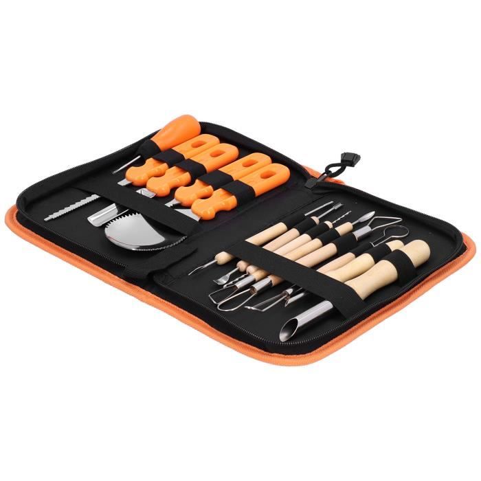 Kit de sculpture de citrouille d'Halloween 13 pièces, outils de sculpture de citrouille en acier inoxydable robustes, ensemble d'outils professionnels de... Traditionnellement, la décoration de citrouille est indispensable. Nous vous répondrons dans les 24 heures. Profitez du temps de sculpture d'Halloween : concevoir des lanternes de citrouille avec votre famille et vos amis est une façon amusante de célébrer Halloween. Ensemble complet de 11 pièces : outils de sculpture de citrouille d'Halloween inclus : 1 pelle à citrouille, 1 foret à citrouille, 1 scie double face, 1 scie unilatérale, 1 cuillère à citrouille et 6 outils de gravure de formes différentes, un sac à outils avec fermeture éclair. Description du produit : Le couteau de sculpture de citrouille est en acier inoxydable et ABS de qualité supérieure, durable et réutilisable. Avec ces outils de sculpture de citrouille, chacun peut sculpter sa propre citrouille et laisser libre cours à sa créativité. Kit Citrouille Halloween Kit De Sculpture De Citrouille Professionnel Les outils de sculpture de citrouille peuvent être organisés de manière ordonnée et rangés dans le sac de transport en nylon résistant à l'usure après utilisation sans se blesser. Contenu de la livraison : 1 kit de sculpture de citrouille d'Halloween (11 pièces). Kit Halloween Ensemble Kit De Sculpture Citrouille Pro Halloween Citrouille Avec 6 Kit Citrouille L'outil de sculpture de citrouille peut fabriquer des lanternes de citrouille, des lanternes, des décorations de citrouille et diverses décorations d'Halloween. La couleur du produit dépend de votre écran et de l'environnement de prise de vue. Il est conseillé de laisser les enfants utiliser le kit de sculpture de citrouille avec leurs parents. Kit de sculpture de citrouilles 7 pièces]L'ensemble comprend 1 pelle à citrouille, 1 scie à double tranchant, 1 petit couteau, 1 foret à citrouille, 1 outil de coupe, 1 couteau à découper en V, une petite scie et 1 sac en tissu. C'est l'outil idéal pour les loisirs créatifs d'Halloween, idéal pour créer différentes citrouilles.[Haute qualité]Ce kit de sculpture de... Matériau robuste et durable : la poignée à outils texturée est fabriquée en matériau ABS de haute qualité, le kit de sculpture de citrouille d'Halloween est antidérapant, respectueux de l'environnement et inodore. Si vous avez des questions, veuillez contacter le service client. Décorez votre maison avec vos lanternes de citrouille uniques. Sûr et facile à utiliser : notre outil de sculpture de citrouille de 11 pièces a chacun une fonction différente et peut vous aider à couper et à créer des détails de citrouille 3D réalistes tels que les cheveux, les dents, le nez et les yeux, ce qui rend la figure de citrouille expressive. Veuillez vous référer au produit réel. Rendez Halloween inoubliable et significatif en favorisant l'interaction entre parents et enfants.