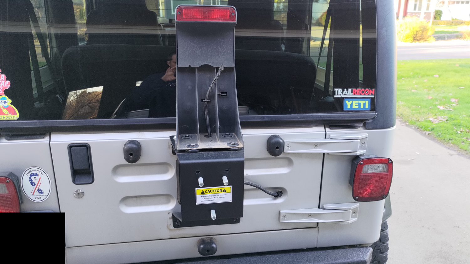Adaptateur de porte vélos avec roue de secours sur le coffre comme Jeep... Par conséquent, n'utilisez pas un pneu de plus de 33x12,50 pouces ou un pneu équivalent avec cet espaceur. Porte Roue de Secours Spacer Jeep CJ Wrangler YJ/TJ/JK 11585-02 , WHEEL , Kulture Jeep Porte Roue Secours Jeep Wrangler Porte Roue De Secours Spacer Jeep CJ Wrangler YJ TJ JK Spacer Pour Roue De Secours Arrière Attention: Les hayons des modèles 07-12 Wrangler ne sont pas conçus pour contenir des pneus extra-larges. Boulonne le support de votre pneu de secours d'usine existant et déplace le pneu deux pouces plus haut. Comprend des modèles de boulons de roue de 5x4,5 pouces et 5x5,5 pouces. Attention: Les hayons des modèles 07-12 Wrangler ne sont pas conçus pour contenir des pneus extra-larges Comprend des modèles de boulons de roue de 5x4,5 pouces et 5x5,5 pouces. Occasion : Pare Chocs Arrière Avec Porte Roue De Secours Incomplet Pour Jeep Wrangler Jk 2007 2018