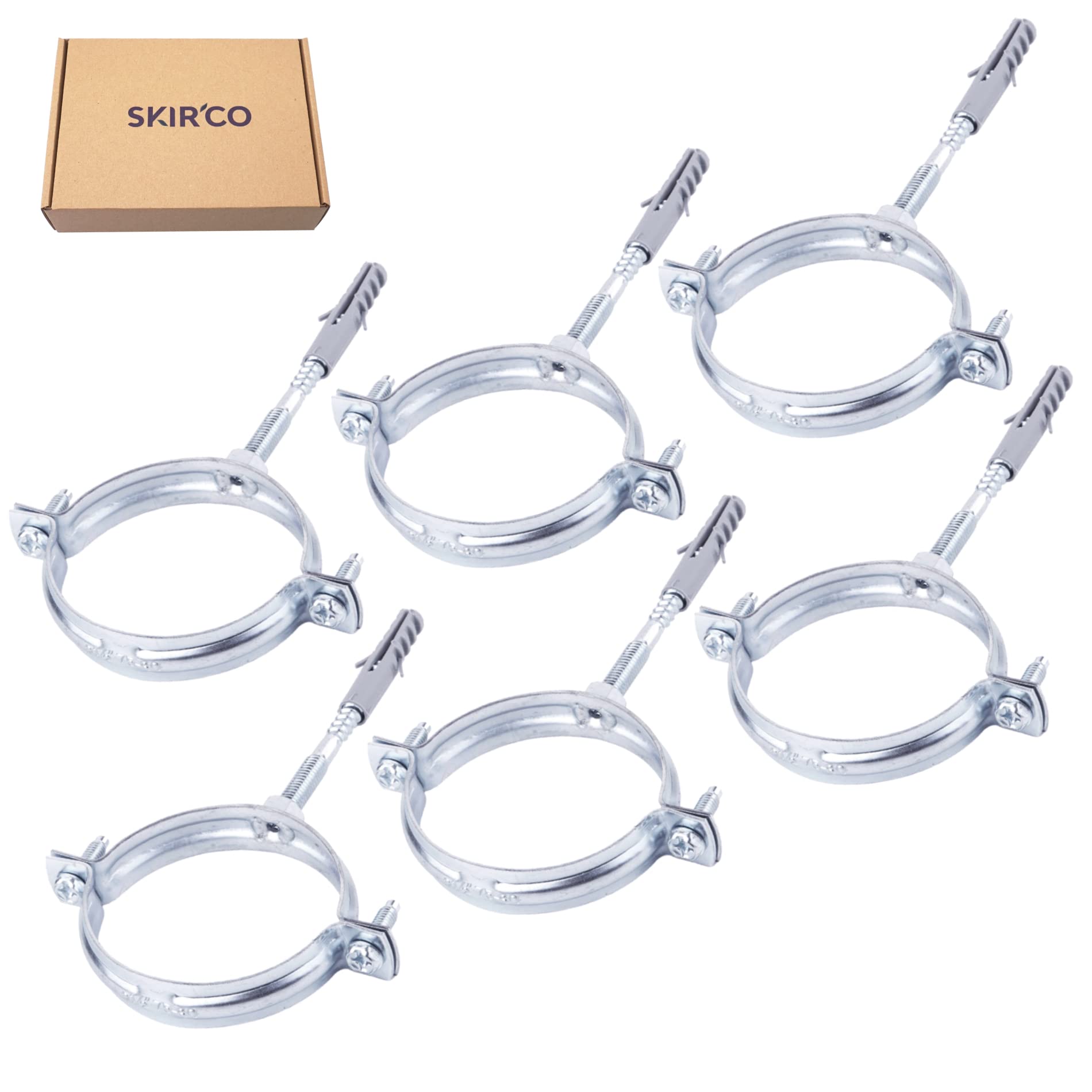 Fixation Murale Plafond KV MB 12 | Collier De Serrage Pour Tuyau, Kit De Colliers Pour Tuyaux, Acier Inoxydable, 60 Collier Pour Serrage Tuyau Accessoire Plomberie Atelier SKIR'CO - 6 Supports Tuyaux Réglables 75-80 Mm | Fixation Murale Et Plafond Garage Supports Montage Mur Conçu pour fixer des tuyaux, tubes, tiges, etc. Lot De 6 Supports De Tuyau Pour Tuyaux De 75-80 Mm De Diamètre (6 Pièces, Avec Embout De... ✔️ Emballage... Conçu pour fixer des tuyaux, tubes, tiges, etc. ; Utilisé dans les zones industrielles et à la maison, dans les garages, etc. ; Facile à utiliser : aucune compétence particulière n'est nécessaire. Les supports de tuyau réglables sont fabriqués en acier au carbone recouvert d'une couche de zinc pour protéger contre la corrosion. ✔️ Convient pour les tuyaux ou tiges de 75-80 mm de diamètre. Grâce aux rondelles en plastique, les vis latérales sont protégées contre les pertes lors du montage ✔️ Je fournis des factures avec TVA affichées séparément. Le kit est complet : 6 supports, 6 ancrages plastique et 6 boulons de suspension pour une installation immédiate. Montez-les au mur ou au plafond selon vos...