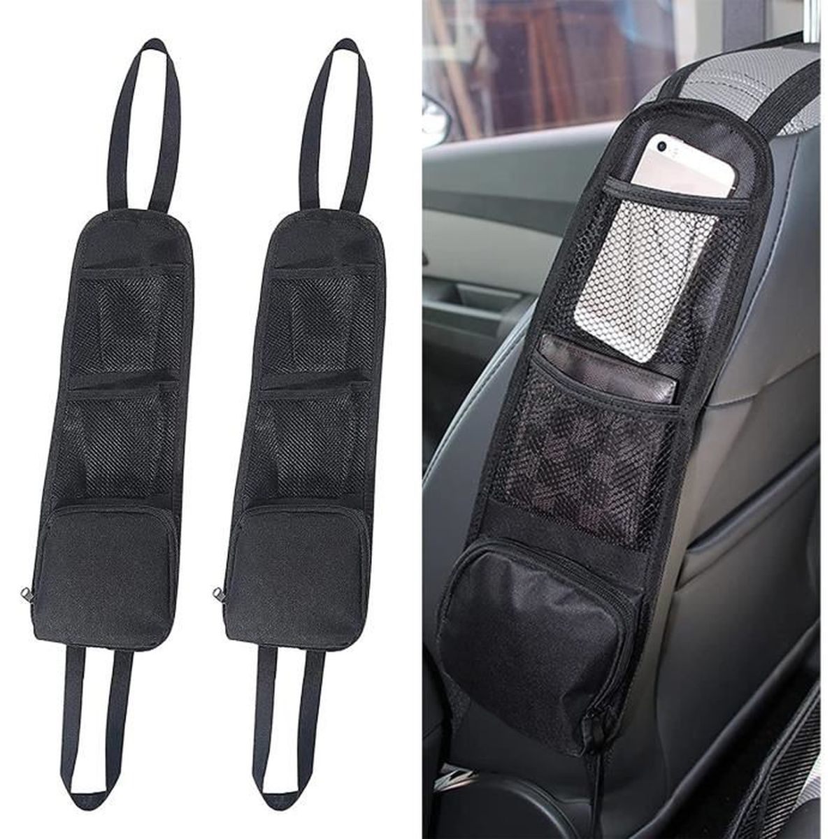 Contenu de l'emballage : vous recevrez 2 ensembles de sacs de rangement à suspendre pour l'intérieur de voiture, nous offrons 3 choix différents pour différentes couleurs intérieures automobiles. Multifonction : il permet le stockage ou l'organisation d'une grande variété d'articles, y compris téléphone, parapluie, clés, collations, boissons, sacs, soda, etc. Le sac de rangement est pliable et ne prend pas de place. Couleur : noir/rouge/bleu. Sac Rangeent Siege Voiture- Achats en ligne pour Sac Rangeent Siege Voiture - Vente au détail Sac Rangeent Siege Voiture fro LightInTheBox Dimensions : la taille du produit après dépliage est de 38 cm x 11,5 cm, ce qui est universellement adapté à la plupart des voitures, camions, SUV, camionnettes. La boucle supérieure de ce produit peut être attachée aux poteaux d'appui-tête uniquement. EN STOCK : Organisateur Latéral de Siège, Sac de Rangement, Support de Téléphone, Poche en Filet pour Tous les Sièges d'auto de Passager Avant pour Voitures... Il est pratique de garder beaucoup d'articles à la longueur de votre bras pendant la conduite au lieu d'avoir à les jeter sur votre siège de voiture ou votre tableau de bord. Cet organisateur de voiture pour siège avant est actuellement l'un des organiseurs latéraux les plus efficaces. Facile à installer : il suffit de mettre la bande élastique supérieure sur l'appuie-tête et la bande élastique inférieure sous le siège, et elle peut être facilement retirée lorsque vous n'en avez pas besoin. Support Passager Voiture Organisateur Latéral De Siège, 2pcs Sac De Rangement, Support Organisateur Latéral SUV Camion Assurez la conduite : le support de sac à main en filet offre un accès facile à vos effets personnels et évite les regards indiscrets, il aide à réduire et à... Gardez votre voiture bien rangée : il est facile de mettre des choses dans les poches et de garder votre voiture en parfait état.