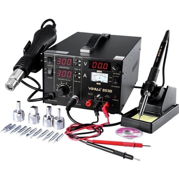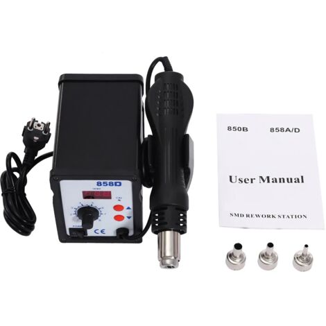 Spécification : Ce produit est conçu pour le dessoudage sans plomb et le brasage courant. KAIWEETS Décapeur Thermique Mini 450W 450°C, Pistolet à Air Chaud 【Applications polyvalentes】 - Conçue pour la polyvalence, notre station de dessoudage à air chaud est votre choix pour une multitude d'applications, allant de la réparation électronique, de l'entretien des PCB/circuits imprimés au décapage de la peinture, au dégivrage, et plus Pistolet Thermique 8 Vitesses Air Pistolet Fer à Souder Station De Soudage 853D 3 En 1 Air Chaud (EU 8 Niveaux Air Buses Remplaçables Le grand transformateur utilise une bobine de cuivre pur de haute qualité, qui pas facile à chauffer et peut supporter un courant important., 2., [Air réglable et buse remplaçable] - 8 niveaux d'air réglables, grand volume d'air avec un écoulement doux ; 3 buses (5/ 7/ 10 mm) ont une longue durée de vie et sont faciles à remplacer, répondant à différents besoins de travail., 3., [Technologie d'induction portative] -- elle permet au pistolet à air chaud d'être activé lorsqu'il est tenu et d'entrer en état de veille lorsqu'il est placé dans le support, ce qui améliore considérablement l'efficacité du travail et réduit les risques pour la sécurité. Avec une température et un air réglables, il peut répondre à divers besoins de travail. Fdit station de pistolet à air chaud Station de dessoudage Rework Kit... 【Air personnalisable 】-offrant une personnalisation avec une soudeuse à dessouder, notre station de soudage garantit des résultats efficaces. Caractéristiques: [Station de soudage numérique] - Plages de température de 100 ℃ (212 ℉) à 480 ℃ (896 ℉), facile à régler grâce aux boutons haut et bas, commutable ℃/℉ ; Affichage numérique de la température LED pour une lecture facile, clair en un coup d'œil. Découvrez nos offres Station de dessoudage : large sélection de produits au meilleur prix | Livraison gratuite à partir de 10€* | Entreprise française | Paiement 4x possible Station de dessoudage à air chaud domestique ou industrielle parfaite ! Il convient à la réparation, au bricolage à domicile et à d'autres besoins de soudage. La poignée antidérapante avec trous de refroidissement assure une utilisation confortable à long terme et une dissipation rapide de la chaleur. 1., [Station de soudage numérique] - Plages de température de 100 ℃ (212 ℉) à 480 ℃ (896 ℉), facile à régler grâce aux boutons haut et bas, commutable ℃/℉ ; Affichage numérique de la température LED pour une lecture facile, clair en un coup d'œil. Technologie d'induction intelligente : l'outil de dessoudage de pointe permet au soudeur à air chaud d'activer ou de passer en mode veille en fonction de votre utilisation, améliorant ainsi l'efficacité et la sécurité du travail.