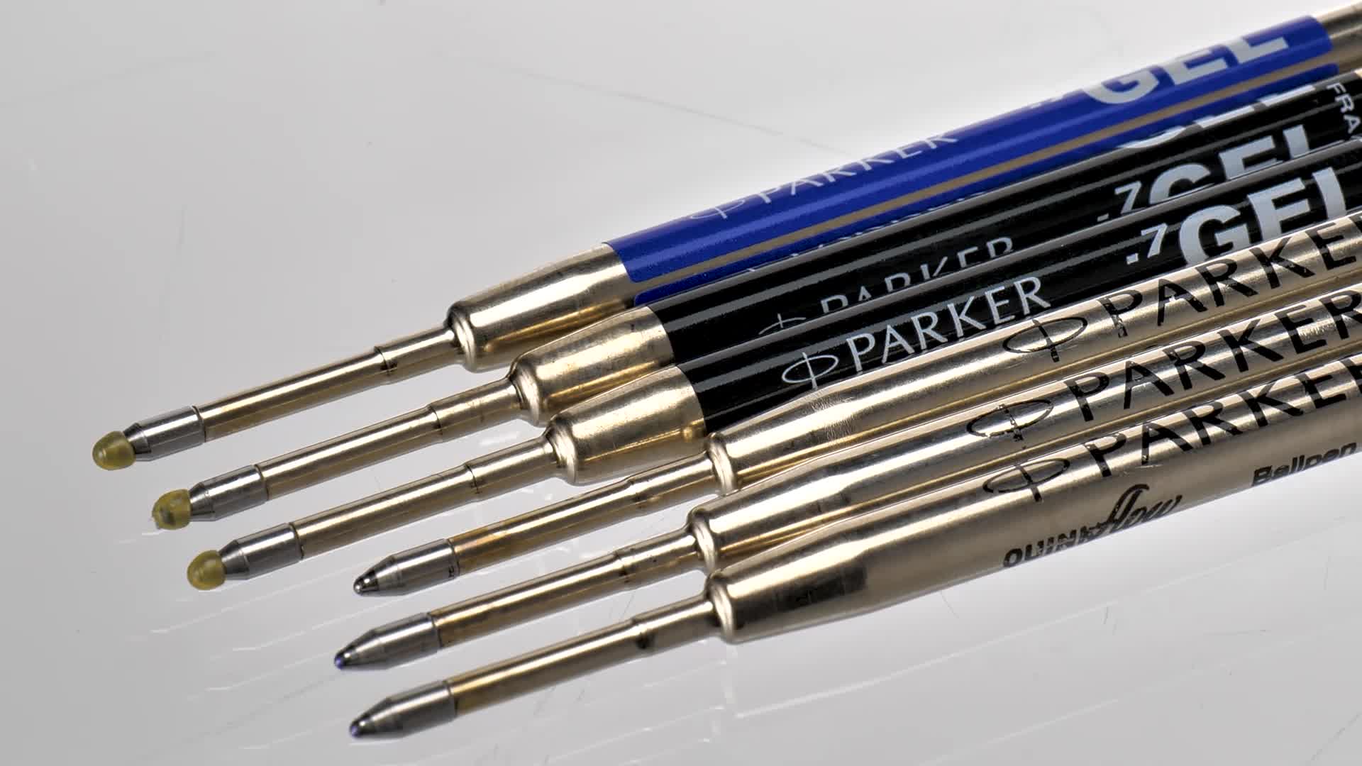 Recharge stylo bille Parker - Fine (F) - Bleu Les recharges d’encre de stylos roller se remplacent en un clin d’œil, pour une écriture fluide et agréable. Laissez vos idées courir sur le papier avec les recharges de stylo bille, pour des performances supérieures sans ratés Lot Recharges Quinkflow Quink Parker Cartouche De Stylo à Bille QuinkFlow Fine / Black | Pen Store Pochette Cadeau Velours Compatible avec tous les stylos à bille Parker Jotter et standard de style Parker, ces recharges sont parfaites pour les tâches d'écriture quotidiennes à la maison, à l'école ou au bureau. Inspiré par le style intemporel de Londres et avec le design emblématique Union Jack, il est à la fois pratique et élégant – le complément parfait à votre collection de stylos Parker PARKER 6 recharges Quinkflow pour Stylo bille - pointe moyenne - Noires... Joliment emballé dans une pochette cadeau en velours, ce lot est le cadeau idéal pour les amateurs de stylo, les diplômés ou les professionnels. Compatibilité polyvalente : comprend 3 recharges Quinkflow et 3 recharges gel Quink (pointe moyenne), entièrement compatible avec tous les stylos Parker Jotter et Parker. Pour un usage quotidien - Parfait pour la prise de notes, le journal, les tâches scolaires ou de bureau - Ce lot de recharges vous garantit que vous ne serez jamais à court d'encre lorsque vous en avez le plus besoin. Design inspiré de Londres – Avec emballage emblématique Union Jack, exclusif à la collection Parker Jotter London – un clin d'œil au patrimoine et au style britanniques.