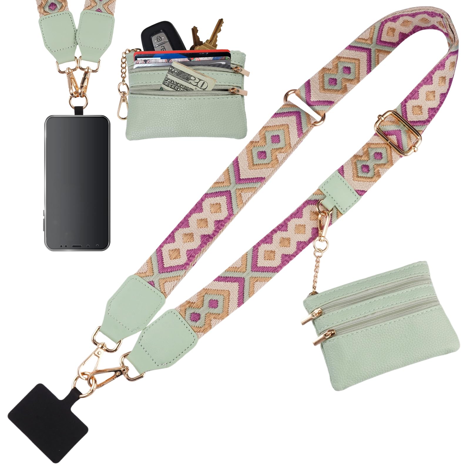 Lanière Téléphone Réglable Universelle Sangle De Téléphone Avec Portefeuille, Laniere Telephone Bandoulière Pour Sac à Main Chaîne de téléphone portable réglable universelle - Sangle de téléphone portable à bandoulière, convient pour tous les smartphones, avec sachet et 2 inserts de rechange,cordon telephone portable Sangle Telephone Portable Orixo Sangle Téléphone Avec Vous pouvez choisir différentes façons de le porter en fonction de vos besoins, comme le cou suspendu, la diagonale ou l'épaule. Sac Bandoulière Femme Petit Pochette Telephone Portable Bandouliere... La sangle de téléphone avec portefeuille est à la mode et pratique, parfaite pour le quotidien, le shopping, les voyages, le cyclisme, etc. Le porte-monnaie est en cuir PU, inodore, résistant à l'usure et facile à nettoyer. DESIGN ADJUSTABLE: La bandoulière est ajustable, la plage d'ajustement est de 49'-55'. MATÉRIEL DE HAUTE QUALITÉ: La lanière est fabriquée en alliage de zinc et en polyester, robuste et durable, et ne se casse pas facilement.