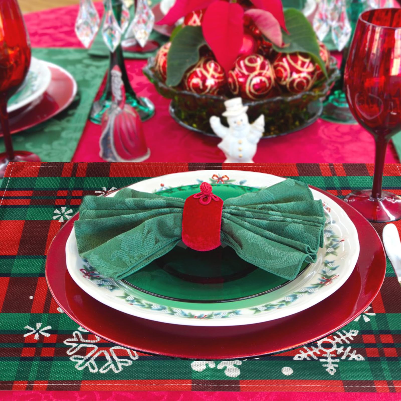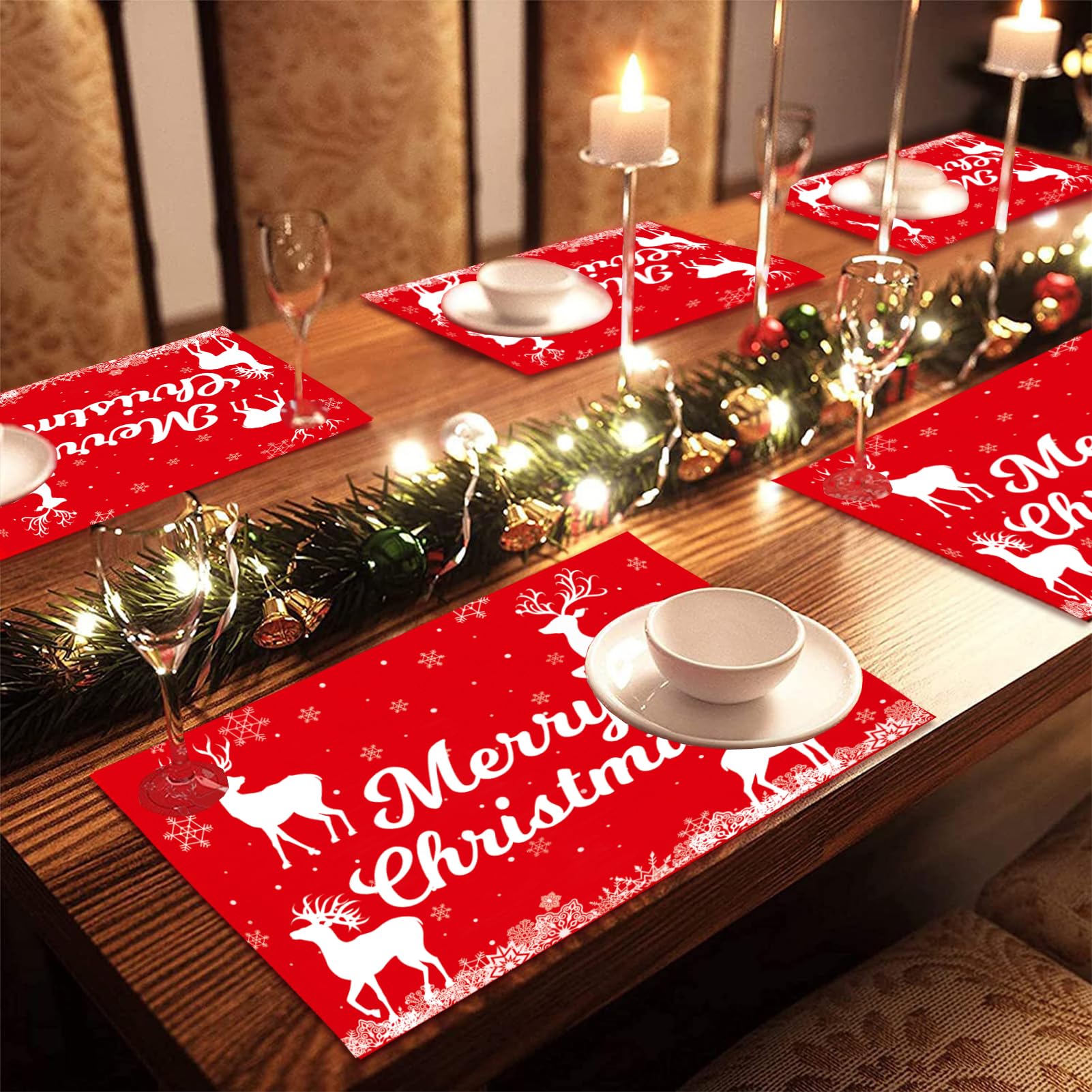 Décoration de bureau de Noël exquise, cest également un cadeau de Noël idéal pour la famille, les parents, les amis, les enseignants et les meilleurs amis. Idée Cadeau Noël Famille Amis Daesar Set De Table 6 Personnes, Set De Table Lavable En Coton Lin Tapis Table Salon Set De Assiette Noel Le set de table est respirant et peut sécher rapidement, ce qui rend le nettoyage très simple. Set d'objets sacrés du cap Design cousu à la main Bénédiction sacrée... Le set de table est imprimé avec des arbres de Noël, des rennes, du Père Noël, des boules de Noël, des couronnes de Noël et des lettres de Noël, un total de 6 motifs imprimés différents. ce qui peut créer une atmosphère de Noël joyeuse, et la combinaison de couleurs vives rend le set de table plus unique et attrayant. Tapis de table - Set de table bol de nourriture - Set de table chien... Ils décoreront la table de votre fête de Noël et ajouteront à lexpérience culinaire de la fête. 🎄🎁Taille appropriée : Ce set table noel mesure 30 x 45 cm, ce qui convient à la plupart des assiettes. 🎄🎁Cadeau de Noël idéal : Nos sets de table de Noël sont conçus de manière unique, composés de carreaux rouges, noirs et verts et dimprimés déléments de Noël. Set De Table En Tissus Lin Lavable En Machine Imperméables Antidérapant Sets De Table Résistant Vous pouvez utiliser des sets de table de Noël pour des fêtes ou des rassemblements de Noël, etc. Les sets de table exquis sur le thème de Noël ajoutent à latmosphère joyeuse de Noël et sont idéaux pour les maisons, les cuisines, les restaurants, les bars, les hôtels.