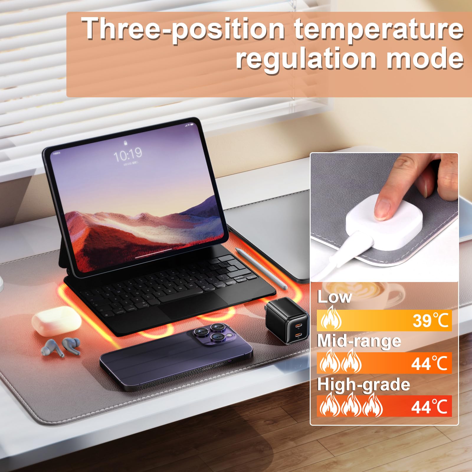 Sous-main multifonction : vous pouvez utiliser le sous-main chauffant comme tapis de souris, tapis chauffe-pieds, tapis pour animaux de compagnie et tapis de souris sans fil. Tapis De Bureau Chauffant SPORWAY Sous-main De Table Tapis De Souris Chauffant, 80 X 33 Cm Grand Tapis De Souris étanche, 5 Niveaux De Chauffage Et 4 Heures D'arrêt Automatique Sous-main Chauffant Pour La Maison Et Chauffe-mains Bureau 80x33 Cm Sous-main chauffant 80 x 33 cm - Tapis de souris chauffant avec 6 niveaux de chauffage et arrêt automatique de 4 heures - Sous-main intelligent pour la maison, le travail de bureau 1., Le tapis de souris chauffant en PVC respectueux de l'environnement se caractérise par une faible odeur, une résistance à l'eau et une fonction de protection contre les rayures., 2., Le sous-main chauffant dispose d'une surface lisse, de sorte que vous pouvez contrôler la souris en douceur et ainsi améliorer la précision et la vitesse lorsque vous jouez ou travaillez., 3., Le sous-main chauffant s'éteint automatiquement après 4 heures de chauffage et se met en veille., 4., Le tapis de souris chauffant peut servir de cadeau idéal pour les membres de la famille, les amis ou les collègues, ils seront ravis de les recevoir et de ressentir votre amour. Fdit tapis de souris d'hiver Tapis de bureau chaud tapis de table tapis... MATÉRIAU DE HAUTE QUALITÉ: Le sous-main chauffant est fait de matériaux respectueux de l'environnement de haute qualité: cuir PU, fond en caoutchouc et tissu de coton, cuir imperméable, fond isolé antidérapant, sûr et imperméable, empêche efficacement les dommages accidentels causés par les liquides renversés. Sûr et durable : le sous-main chauffant offre une protection multicouche, un coussin antidérapant, une feuille d'aluminium en cristal de carbone épaissie, une couche de protection en cuir imperméable, durable, garantit que la chaleur ne surchauffe pas, et la grande surface est garantie uniforme, de sorte que vous pouvez continuer à profiter de la chaleur. Les dimensions de 80x33 cm annoncées sont respectées. Il y a 3 niveaux de chauffe 40-45-50 degrés. La surface de chauffe est réglable par zone. Le bouton de... Contenu : 1 sous-main chauffant intelligent. Spécifications: Nom : sous-main chauffant intelligent Matériau : cuir PVC + fond en caoutchouc antidérapant Couleur : noir. Sous-main chauffant intelligent : notre sous-main chauffant dispose d'un interrupteur d'affichage numérique intelligent et d'un affichage de la température LED sur la surface, ce qui vous permet de connaître facilement la température de chauffage. Tapis de Souris XXL Astérix et Obélix - Tapis de Bureau 80 x 35 cm Dimensions : 800 x 330 mm / 31,5 x 13 pouces Plage de température : 30 °C à 50 °C., Tension nominale : 220 V. Vous n'avez donc pas à vous soucier d'oublier de l'éteindre.
