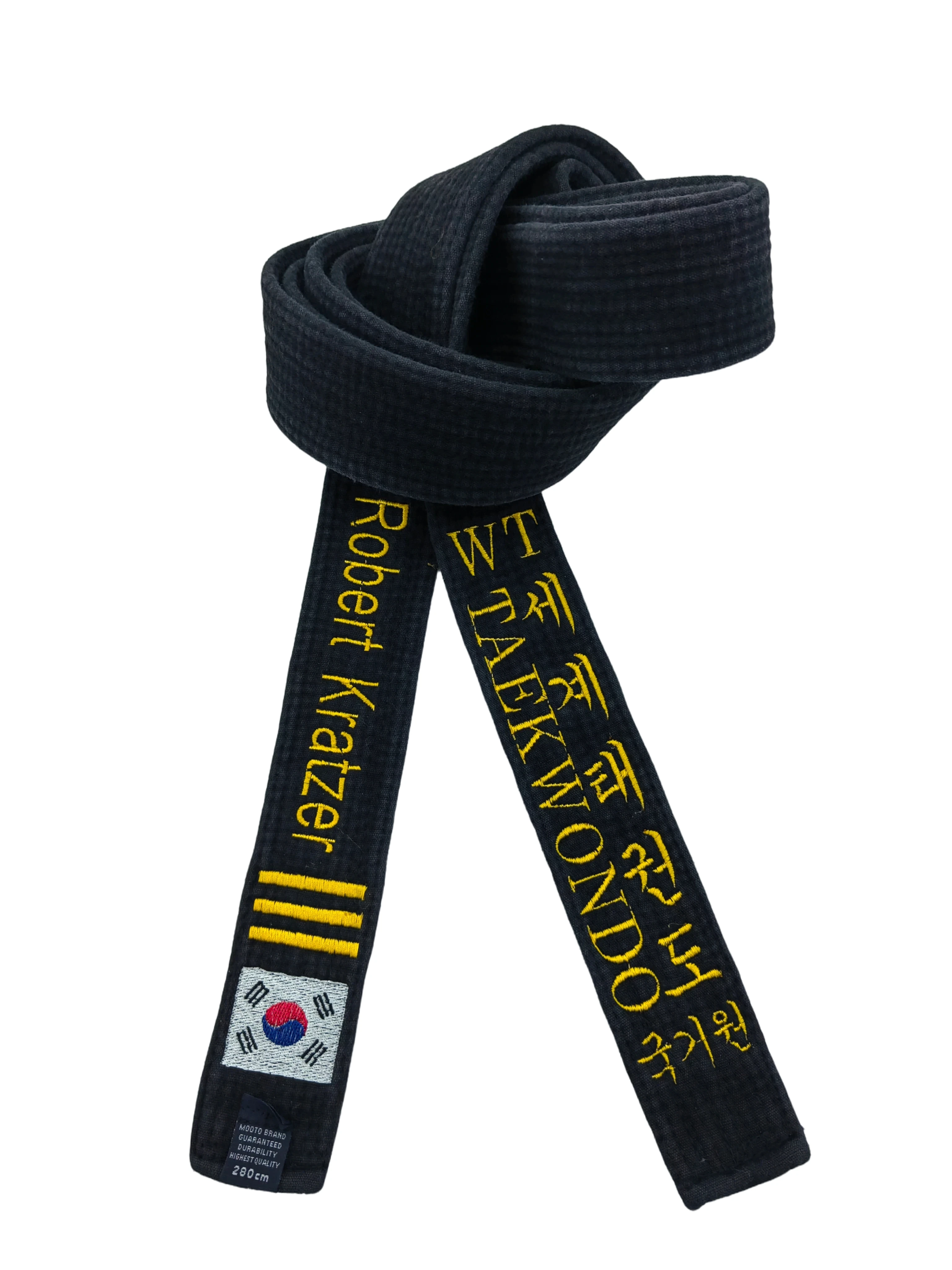 CEINTURE NOIRE PERSONNALISEE - SARL AJI SPORT Taekwondo - SARL AJI SPORT Ceinture Noire Taekwondo Ceintures Noires De Taekwondo De 5cm De Largeur Avec Broderie Ceinture Personnalisable Taekwondo Personnalisez votre ceinture noire de Taekwondo et ajoutez de la personnalité. Personnalisable : avec la possibilité de personnaliser en ajoutant votre nom ou vos initiales, vous pouvez rendre cette ceinture vraiment unique. Ceinture Noire Du Taekwondo Photo stock - Image du pouvoir, position... Choisissez parmi les broderies chinoises, coréennes ou japonaises. Multilingue : la personnalisation vous permet de spécifier la langue de chaque ligne, et nous offrons une traduction gratuite en chinois, coréen ou japonais. Taille polyvalente : nous proposons une gamme de tailles pour garantir un ajustement confortable et sûr pour chaque client. Design réversible : notez que les mots au dos de la ceinture sont reflétés en raison du processus de broderie.