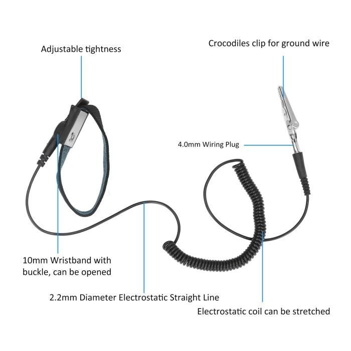 Bracelet antistatique (ESD) bleu Quadrios 1903EC035 Pression mâle 10 mm 1 pc(s Comment l'utiliser ?Étapes d'installation : 1., Sélectionnez une sangle de talon anti-statique avec les spécifications appropriées ; 2., Portez des chaussures dans un environnement de laboratoire pour libérer efficacement l'électricité statique du corps et protéger les équipements électroniques. Sangle Conductrice Réglable Chaussure QUARKZMAN Sangles De Talon Antistatiques ESD De 1.2M, 5 Pièces, Sangle Bracelet Mise à Terre Laboratoire Que vais-je recevoir ?Longueur du fil : 600 mm / 23,62 poucesRésistance électrique : 106-109Ω/㎡Matériau : Tissu non tissé conducteurCouleur : Ceinture rougeStyle : TypeContenu du paquet : 10pcs x Sangle de talon anti-statiqueQuels sont les avantages du produit ?Bonne conductivité électrique permettant de libérer l'électricité statique du corps ; Ajustable et adapté à différentes chaussures, facile à utiliser et durable ; Bonne élasticité et longue durée de vie. Bracelet anti-statique ESD (DES) (SWS100 Bracelet antistatique et accessoires de mise à la terre. Pour équiper votre personnel en zone EPA en toute sécurité, nous proposons des bracelets... Bonne conductivité électrique permettant de libérer l'électricité statique du corps ; Ajustable et adapté à différentes chaussures, facile à utiliser et durable ; Bonne élasticité et longue durée de vie., Étapes d'installation : 1., Sélectionnez une sangle de talon anti-statique avec les spécifications appropriées ; 2., Portez des chaussures dans un environnement de laboratoire pour libérer efficacement l'électricité statique du corps et protéger les équipements électroniques. Le port de ce bracelet anti-statique permet d'éliminer l'électricité statique générée dans corps humain en moins de 0,1 seconde. Lors de l'utilisation, le bracelet doit être en contact avec la peau et assurez-vous que le fil de mise à la terre est directement relié à la terre. Le port de ce bracelet anti-statique permet de supprimer l'électricité statique générée dans le corps humain en moins de 0,1 seconde. Longueur du fil : 600 mm / 23,62 pouces ; Résistance électrique : 106-109Ω/㎡ ; Matériau : Tissu non tissé conducteur ; Couleur : Ceinture rouge ; Style : Type ; Contenu du paquet : 10pcs x Sangle de talon anti-statique Elle conduit l'électricité statique du corps humain vers la terre via le bracelet et le fil de mise à la terre.