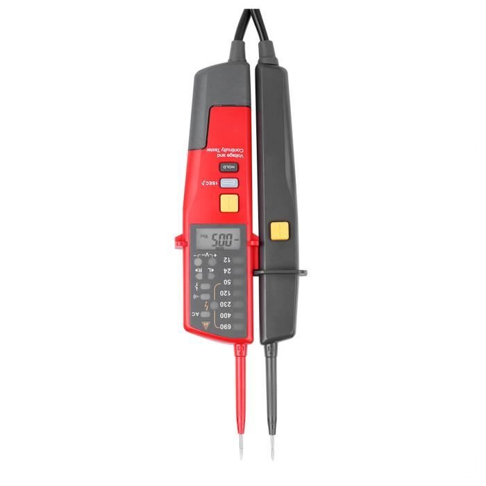 Testeur de ligne téléphonique, détecteur d'ouverture de court-Circuit, prise RJ11, testeur de... 【Étanche】 Conforme à l'indice d'étanchéité IP65., Sûr à utiliser même dans les endroits pluvieux ou humides. 【Grand écran LCD et éclairage】 La fonction d'éclairage intégrée peut fonctionner dans l'obscurité ou la nuit, pratique à utiliser. Testeur De Terre YOSOO Électroscope Testeur De Tension HT101 Détecteur De Tension Sans Contact Intelligent Avec Testeur étanche IP65 【Multifonction】 Ce testeur de continuité de tension peut fournir une tension alternative et continue (y compris la mesure de courant alternatif triphasé), une phase d'indicateur de courant alternatif triphasé, un test marche-arrêt, une continuité, un test RCD, une polarité, une mesure de stylo unique (peut déterminer le fil N ou fil L), autotest. Fluke testeur de tension et continuité T 130 Description du produit Caractéristiques: 1., Avec affichage LCD de la tension et de la fréquence: avec affichage LCD et graphique à barres numérique, avec fonction de rétroéclairage, vous pouvez travailler dans l'endroit sombre du sous-sol, ce qui peut garantir votre sécurité!, 2., Fonction de veille automatique : lorsque le conducteur testé est supérieur à 12 V, il s'allume automatiquement, ce qui améliore l'efficacité de votre travail lors des tests., 3., Fonction RCD : utilisée pour détecter l'interrupteur de protection contre les fuites et connaître l'endroit qui doit être réparé à temps., 4., Avec fonction d'auto-inspection: mesure du stylo à un seul mètre, peut déterminer le fil neutre ou sous tension, indication de la polarité, afficher les pôles positifs et négatifs de la tension du conducteur mesurée, invite à une batterie faible et à une tension de mesure hors plage pour améliorer l'efficacité de votre détection., 5., Avec le test de rotation de phase à courant alternatif triphasé, il peut indiquer la relation de phase de la puissance triphasée., 6., Deux modes de sonnerie et de sourdine, fonction d'éclairage intégrée, permettant de travailler dans un environnement nocturne ou sombre., 7., Niveau de sécurité élevé : répond au niveau d'étanchéité IP65, double isolation, exigences de niveau de sécurité CAT III 690V, CAT IV 600V., 8., Gamme automatique Recommandations : 1., Si votre environnement de travail est sombre, humide et pluvieux et nécessite un niveau élevé de sécurité de test, les produits de test de continuité de tension étanches UT18D seront votre choix idéal. UNI-T UT18C Numérique Tension Mètre Gamme Automatique Continuité Testeur AC/DC Voltmètre La Fréquence RCD Testeur