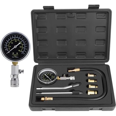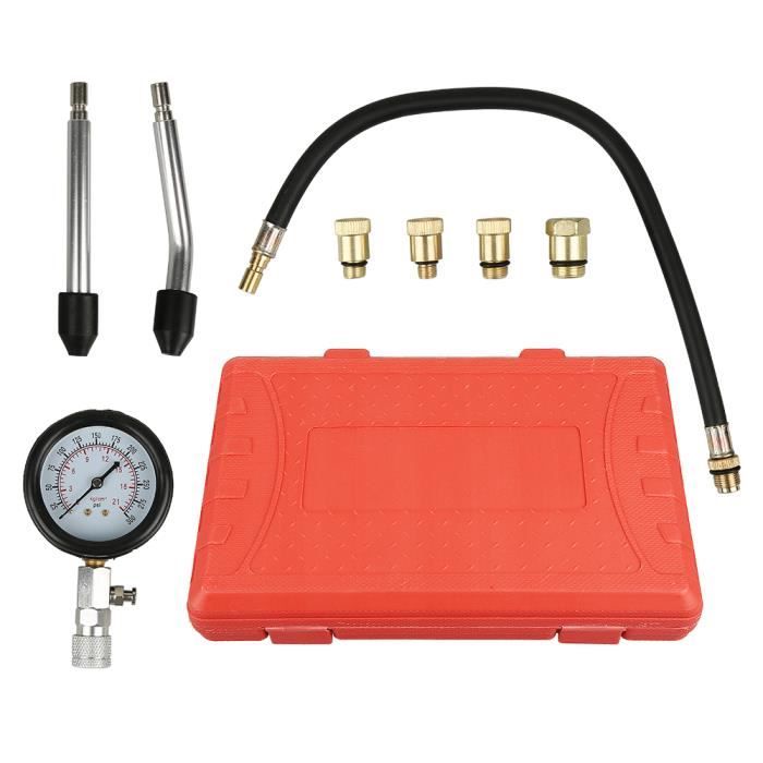 Mesure de compression moteur - Auto Kit Compression Moteur Essence Voiture Moto Kit De Testeur De Compression De Moteur à Essence, Cylindre De Gaz Jauge De Compresseur Ensemble Doutils De Test Pour La Reparation De Motos Automobiles 91512850 Compressiometre Essence La double jauge est très claire : l'une indique la pression (de 0 à 100 PSI / 7 Bars) et l'autre le taux de fuite (de 0 à 100%). Avec lui, vous pouvez détecter... Mesures précises et fiables : Le Moteur Testeur de Compression fournit des lectures précises des soupapes, des segments de piston, des alésages de cylindre et des joints de culasse, vous aidant à diagnostiquer de manière fiable l'état de votre moteur. Achetez un manomètre de compression pour moteurs essence et diesel sur . ✓ Garantie de 2 ans ✓ Retour gratuit sous 60 jours ✓ Commandé avant 20h00... Conception Durable Et Protectrice : Le manomètre est doté de deux échelles (0-300 psi, 0-21 kg/cm²) et est livré avec un protecteur en caoutchouc pour éviter les rayures et garantir des performances durables. Large Compatibilité : Le Moteur Testeur de Compression comprend quatre adaptateurs de filetage (M10, M12, M14, M18) pour une utilisation sur les motos et les voitures, ce qui en fait un outil polyvalent pour différents types de véhicules.