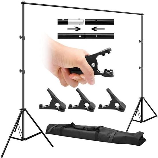 Multifonction : il peut être utilisé comme un outil fixe, adapté pour les studios photo, les toiles de fond en mousseline, la toile, le papier, le tissu, les écrans en polyester, les supports de toile de fond pour photographie, etc Lumiere Photo Neewer Système Support De Toile De Fond,Support Fond Large 3m Haut Clips Serrage Toile Pour les oeuvres d'art Il tient bien les illustrations Le tout en alliage d'aluminium léger mais capable de supporter 16 kg. Montage en 2 configurations : angle droit ou horizontal. Les pinces tiennent vraiment bien... Coussinets oranges réglables Les coussinets orange offrent une adhérence supplémentaire, les coussinets flexibles sont faciles à glisser et à ajuster selon les besoins. Ressorts en acier trempé Une pression de serrage constante est fournie par un ressort hélicoïdal en acier trempé qui résiste à la fatigue et est monté par vis pour plus de résistance et de durabilité. Présentation du produit Emart 6 Pcs Pinces pour Fond Studio Photo, Pince à Ressort de de 11,4 cm, Grosse Pince pour Toile de Fond [60] Dent Mobile : les dents mobiles vous aident à fixer la toile de fond dans n'importe quelle direction.Construction Robuste : ressort solide et surface rugueuse pour fixer fermement tout ce qui est sur le support.Bonne Compatibilité : la zone dentée sous les... Pour les oeuvres d'art Pour l'écran de fond Les clips à ressort et les clips aplatissent l'écran pendant l'utilisation Manche granulé Grip granulé pour plus de friction lors de l'utilisation. EMART Kit de support réglable pour toile de fond photo 2,6 x 3 m pour Pour les anniversaires Il se fixe bien au support de toile de fond et serre bien les décorations Solide et durable : fournit une puissance de maintien instantanée et est facile à repositionner lors de l'assemblage; parfait compagnon pour vos toiles de fond.