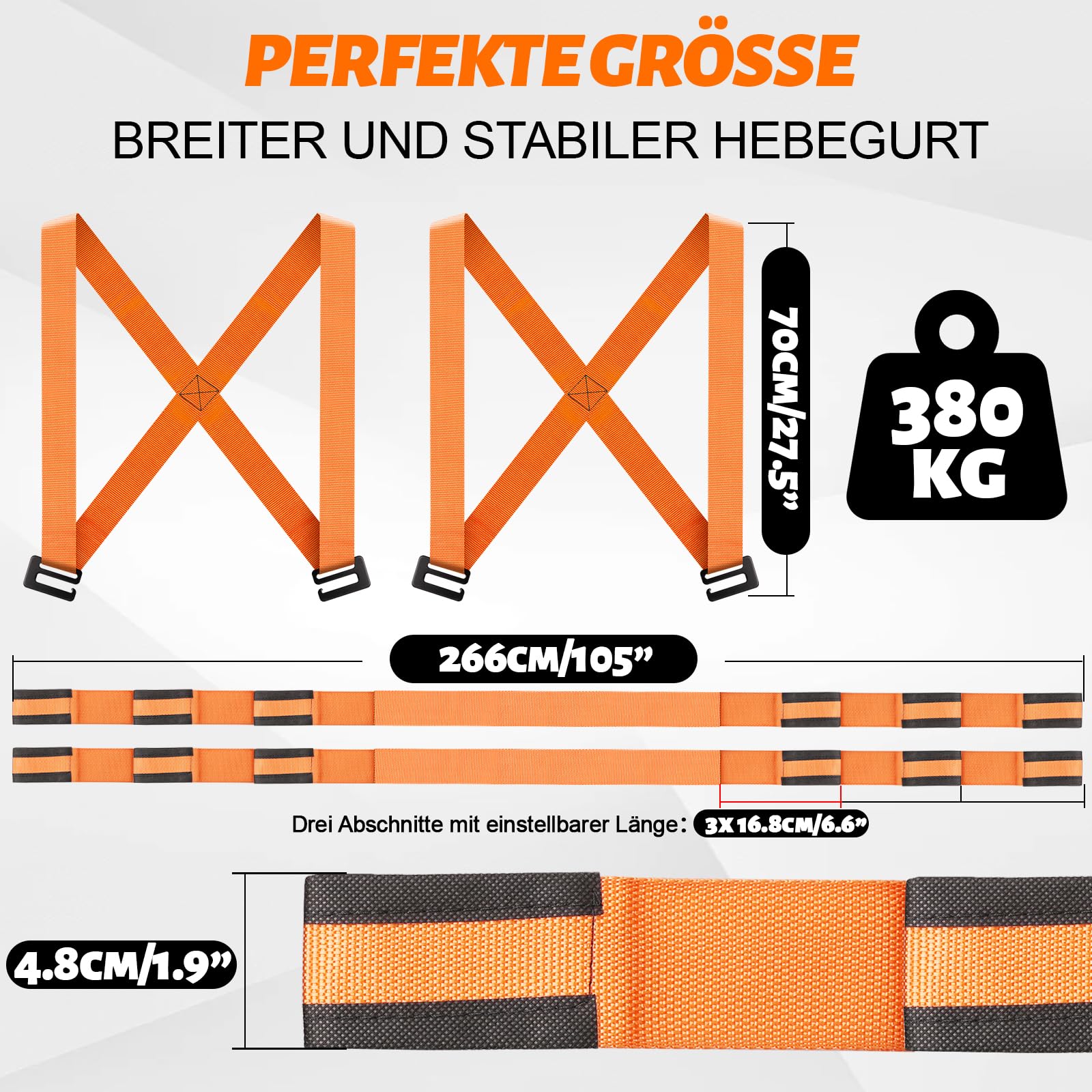 Sangle de levage lingue de levage plate 2T, sangles de levage de grue Qualité supérieure et robuste : la bandoulière de déménagement comprend 2 bretelles avec rembourrage en mousse, 2 sangles de transport de 13 m., Charge maximale : 400 kg. Sangle Réglable Matelas Frigo Yirilan Sangle De Transport Pour 2 Personnes, Renforcée Sangle Réglable Réfrigérateur Matelas Minimise la charge et le risque de blessure pour le bas du dos, les bras et les mains. Sangles de déménagement, sangles de levage pour 2 personnes pour... Qualité supérieure et robuste : la bandoulière de déménagement comprend 2 bretelles avec rembourrage en mousse, 2 sangles de transport de 13 m. Charge maximale... Protège également les meubles et les appareils contre les coupures et les rayures. Réglable et pratique : sangle de transport, longueur réglable, convient pour les réfrigérateurs, matelas, canapés et autres appareils et meubles. 【Service client parfait】Nous vous offrons des produits de qualité supérieure. Ingénieux et économique : la sangle de transport pour 2 personnes est conçue de manière ergonomique pour économiser de l'énergie et déplacer des objets lourds avec facilité. Il peut être utilisé par seulement deux personnes qui travaillent ensemble. capacité de charge : 400 kg (orange).