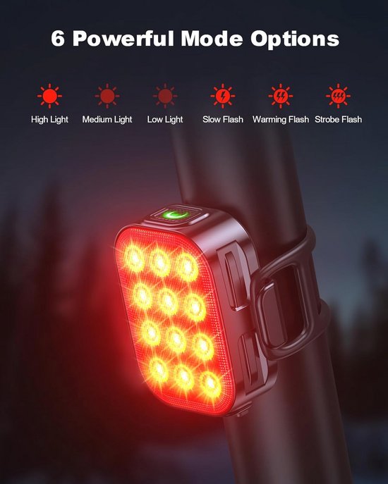 Niveaux d'étanchéité : IP64., Mode d'éclairage : haute luminosité/faible luminosité/double flash. Feu Arrière De Vélo Rechargeable Par Usb, Éclairage Led Lumineux... Visibilité nocturne améliorée : en utilisant des lampes LED haute luminosité, ce feu arrière de vélo assure une visibilité parfaite, améliorant la sécurité pour les promenades ou les courses nocturnes, permettant un voyage confiant dans toutes les conditions d'éclairage Dimensions du produit : environ 5,1 x 2,75 x 1,65 cm., Chargement : Type-C. Lampe Vélo Capteur Frein Automatique Feu Arrière De Vélo 6 Modes, Rechargeable Par Usb Ipx4 Étanche Ultra éclairage Vélo Sac à Dos Visible Nuit Remarque : En raison des différents paramètres d'éclairage et d'écran, la couleur de l'article peut être légèrement différente de celle de la photo. Améliorez votre sécurité pendant les trajets nocturnes avec notre feu arrière pour vélo. Accessoires : câble de données/autocollant. Capteur de frein intelligent : doté d'un capteur de frein intelligent qui s'allume automatiquement pendant 2 secondes lors de la détection du freinage, ainsi qu'un capteur de vibrations qui s'allume avec le mouvement et s'éteint après 30 secondes d'immobilité, ce feu arrière améliore considérablement la sécurité pendant les trajets de nuit Pratique et portable : facile à transporter et à ranger, avec un design léger et compact, idéal pour le cyclisme, la course ou les voyages quotidiens, assurant la commodité souvent à portée de main Caractéristiques : Nom : feu arrière de vélo. Autonomie de la batterie : 8-12 h. Arrière · Sacoches de selle · Sacs de guidon · Sac d'emballage · Sac de sport ... dos · Sacs de pique-nique · Sac isotherme · Lumière pour vélo · Accessoires pour... Polyvalent et flexible pour répondre à vos besoins d'éclairage dans différents environnements. Utilisations multiples : assurez-vous de voyager en toute sécurité sous tous les angles avec ce feu arrière polyvalent. Lampe Arriere Velo Feux Velo Curieux-Ensemble De Feux De Vu00e9lo USB Rechargeable Avant Ensemble De Feux Arriu00e8re Vu00e9lo Lampe Arriere Pour Velo