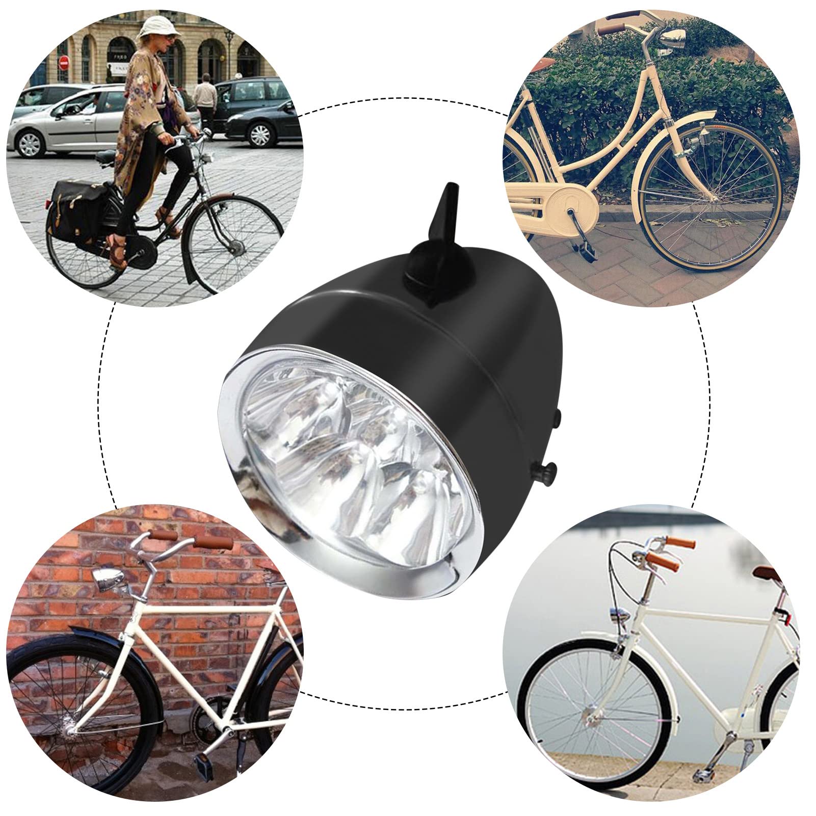 [Éclairage puissant] : équipé d'une lentille spéciale qui fournit une sortie lumineuse optimale. La LED blanche offre un grand angle de vision de 160°, illuminant votre chemin et vous assure d'être visible par les autres. Si votre vélo a un porte-bagages précédent, il ne peut pas être installé. Facile à utiliser : dispose d'un bouton poussoir rotatif à gauche et à droite pour un contrôle simple. Alimentée par 3 piles AAA (non incluses), cette lampe longue durée est un incontournable pour tout amateur de cyclisme. Profitez d'une utilisation sans tracas lors de vos aventures nocturnes. Contenu de l'emballage : 1 phare LED pour vélo (batterie non incluse)., 1 support. Style rétro classique rétro pour rendre votre vélo unique. Le colis comprend à la fois le phare LED et le support de montage pour une installation immédiate. Sécurité améliorée : notre phare de vélo vous permet de rester clairement visible pendant les trajets de nuit, offrant une excellente protection sur la route Il vous permet de rester clairement visible pendant les promenades de nuit, offrant une excellente protection sur la route. Roulez en toute confiance la nuit avec cette lampe frontale lumineuse et efficace. Caractéristiques : Les verres spéciaux offrent un rendement lumineux optimal. Phare avant de vélo 6 LED vintage vélo avec support argent - Shipenophy [Design vintage classique] : améliorez l'esthétique de votre vélo avec notre phare LED de style rétro. Nos phares de vélo vous permettent de rester clairement visible la nuit et offrent une excellente protection sur la route. Dimensions approximatives : Lampe frontale : 8,2 x 14 cm. Le phare est conçu pour une installation facile, vous permettant de l'installer rapidement et de commencer à rouler. Pour les cyclistes qui apprécient l'élégance intemporelle combinée à une fonctionnalité moderne. Éclairage puissant] : équipé d'une lentille spéciale qui fournit une sortie lumineuse optimale. La LED blanche offre un grand angle de vision de 160... Phare Vélo Avant RichVibe Phare Avant De Vélo Rétro à LED Avec Grand Angle De 160 Angle Vision 160 La finition chromée et le look vintage ajoutent une touche de nostalgie à votre vélo, ce qui rend votre vélo unique. Vérifiez toujours les spécifications de votre vélo avant l'achat. La conduite de nuit vous apporte sécurité.