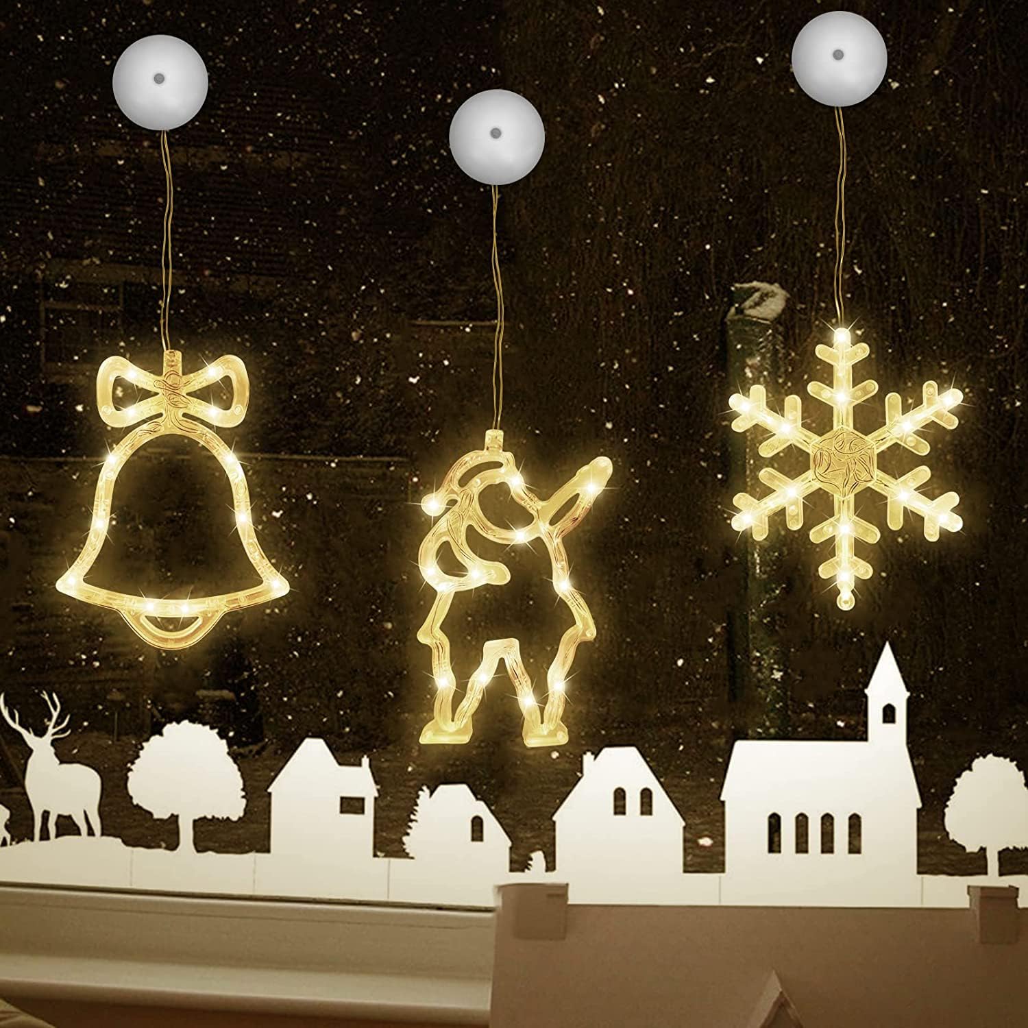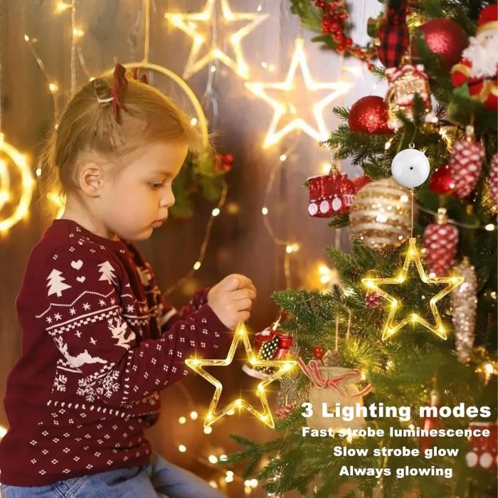 Lumières LED de Noël LED Lumières De Noël Fenêtre Ventouse Lustre Lampe... La lampe de décoration de fenêtre est livrée avec une ventouse qui se fixe facilement au verre, aux portails, les armoires, etc. Belle apparence et lumière chaude qui vous surprendra facilement. Le design unique en forme d'étoile crée une atmosphère douce et chaleureuse pour vos lumières de Noël. Lot de 2 décorations de Noël en toile pour fenêtre - Chaque lampe a 10 LED - Avec des tons chauds - Ne s'abîme pas facilement. Tension d'entrée : ≤ 36 (V)., Nombre de LED : 10., Alimentation : 3 piles AAA (non incluses). Les lumières de Noël décoratives sont le meilleur choix pour la décoration intérieure et extérieure. Lumières de fenêtre flocon de neige avec ventouse, 5 pièces, LED Les lampes de fenêtre ont une fonction chronomètre. Assurez-vous que l'aspirateur est propre avant l'installation et ajoutez de l'eau appropriée pour augmenter l'adhérence. étoiles LED Ventouse FENYW 6pcs Lumières De Ventouse De Noël,Rideau Lumineux Noel Avec Guirlandes Lumineuses Noël Ventouses La hauteur peut varier en fonction de la la position peut être réglée et appuyez sur le bouton ON/OFF sur le compartiment à piles pour allumer ou éteindre les lumières (mode d'éclairage : lumière continue). Fonctionne sur batteries pour plus de commodité. Avec ventilateur, facile à utiliser. Guirlande Lumineuse , Étoile Lumineuse,Rideau Lumineux Avec Étoiles,Décoration Pour ... Led · - Luminaire exterieur. Neuf dès 23,38 Lorsque vous allumez la lumière, le chronomètre compte pour vous. Cadeau de Noël : les décorations de fenêtre conviennent comme cadeau de Noël pour vos amoureux, amis et collègues. Peut être utilisé pour décorer les maisons, les fenêtres, les magasins, les bars, les jardins, etc. Lumières de Noël au design unique. Ces lampes de fenêtre fonctionnent avec 3 piles AAA (piles non incluses). Laissez les lumières de Noël vous accompagner pour passer un Noël joyeux et inoubliable