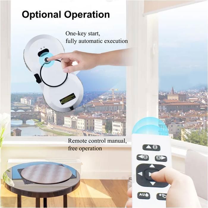 Nettoyage intelligent]Démarrez le robot de nettoyage de vitres en un seul clic, planifiez intelligemment et automatiquement un chemin de nettoyage en... Faible bruit: le robot de fenêtre est équipé d'un moteur haute performance qui ne fait aucun bruit pendant le fonctionnement et nettoie avec seulement 65 décibels, de sorte qu'il ne vous dérangera pas, vous et votre famille, il est plus rapide, plus silencieux et ne laisse pas de traces ni de taches. Normes de sécurité les plus élevées : le robot nettoyeur de vitres a une puissance d'aspiration étonnante de 5600 Pa, il peut être fixé fermement à la fenêtre et ne glisse pas facilement pour assurer un nettoyage sûr et efficace, même en cas de panne de courant, la batterie intégrée fonctionne encore jusqu'à 30 minutes et revient en toute sécurité, et enfin il est équipé d'un câble de sécurité de 4,5 mètres qui peut supporter un poids allant jusqu'à 180 kg. Nettoyage Fenêtre Double Pulvérisation Robot Nettoyeur De Vitres 5600 Pa, Automatique Avec Réservoir De 60 Ml Et 8 Chiffons, Pulvérisation Automatique, Navigation Intelligente, Télécommande Robot Vitre Télécommande Grand réservoir d'eau : l'aspirateur de fenêtre dispose d'un grand réservoir d'eau de 100 ml, ce qui signifie qu'il n'est plus nécessaire de remplir fréquemment de l'eau ou de solution de nettoyage, il peut nettoyer rapidement et efficacement de grandes surfaces de fenêtre et répondre à la longue durée de vie en toute situation. Excellente Puissance D'aspiration]Avec une puissance d'aspiration de 5600 Pa, le robot nettoyeur de vitres peut maintenir fermement la fenêtre à tout moment à l'intérieur et à l'extérieur, et il est doux pour leurs surfaces qui ne rayent pas ou ne salissent pas, et vous offre un moyen facile de nettoyer les fenêtres clairement visibles et non plus grasses. Robot Surface Lisse Robot Nettoyeur De Vitres Automatique - 5600Pa Aspiration - Télécommande - Pulvérisation Automatique - Pour Toutes Surfaces Lisses Robot Lave Vitres Automatique 5600pa